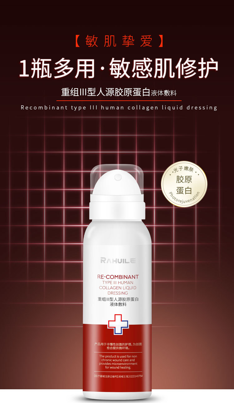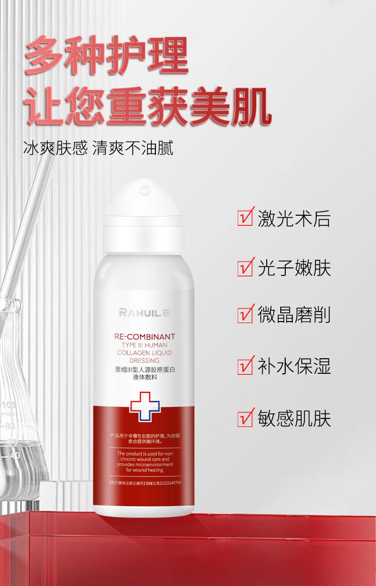 Медицинский спрей-повязка с рекомбинантным коллагеном используется исключительно в больницах класса II для ускорения заживления ран и восстановления защитного барьера.