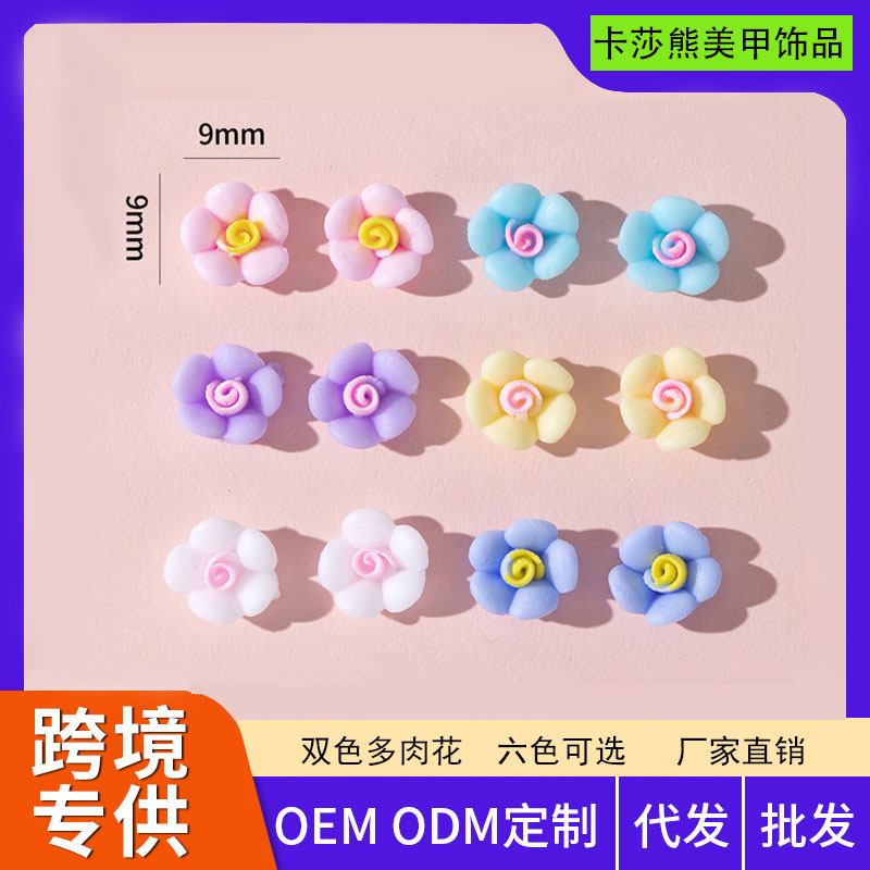 Взрывы интернет-знаменитостей на заказ двухцветный мясистый пятилепестковый маленький цветок аксессуары для дизайна ногтей эмуляция крем-гель светящиеся украшения с блестками