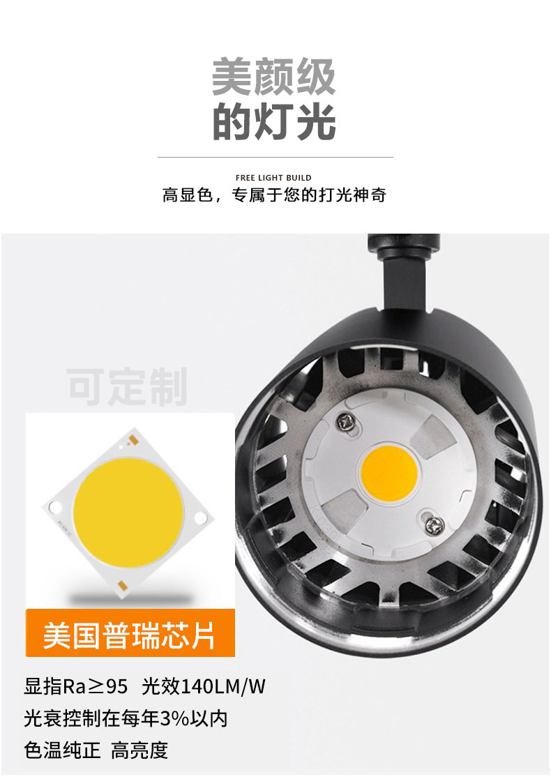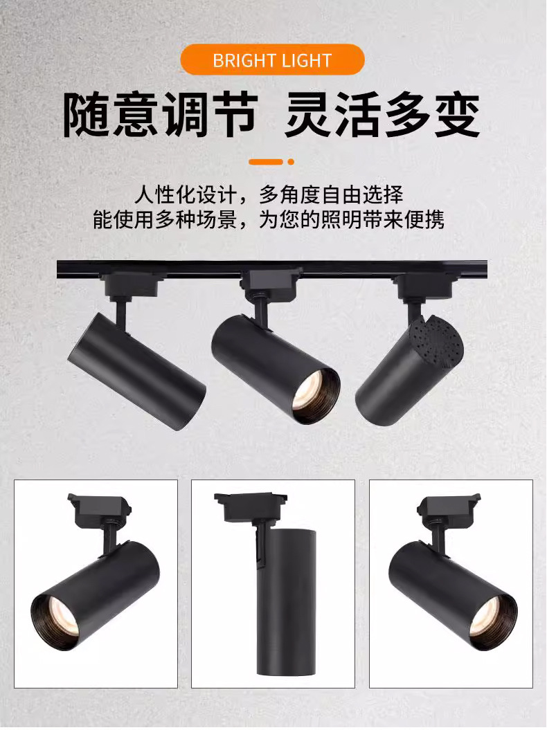 Трековый светильник для выставочных залов, магазинов одежды, COB с зумом, накладной светильник для гостиной, светильники из Гуандуна, Чжуншань, светодиодный трековый светильник.