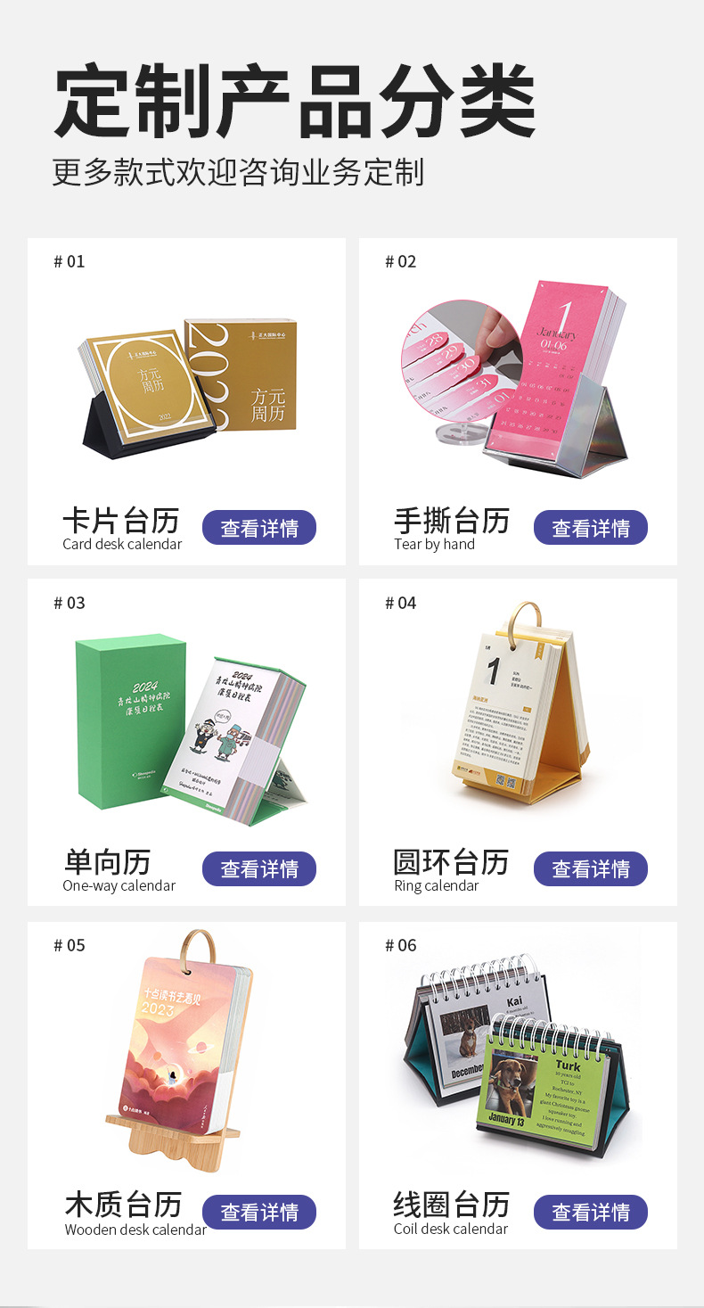 настольный календарь с кольцами; Однонаправленный календарь Rivet; деревянный настольный календарь; Коробка для хранения Настольный календарь; Коллекция креативных моделей; Оторванный еженедельный календарь; треугольный календарь; Магнитный кожаный настольный календарь.; Настольный календарь с пружинным механизмом; Персонализированный настольный календарь
