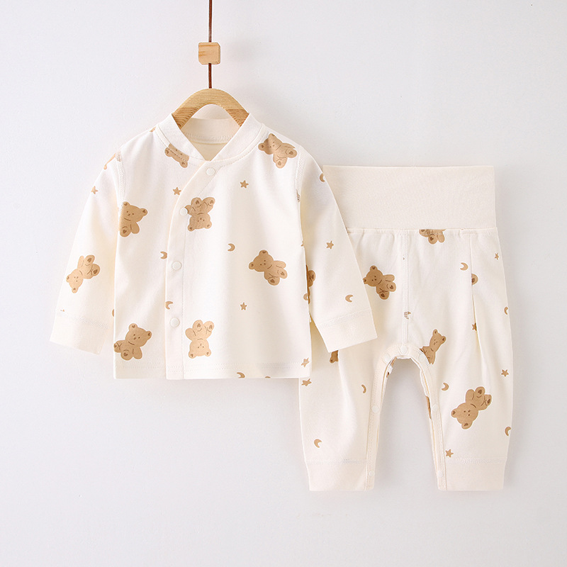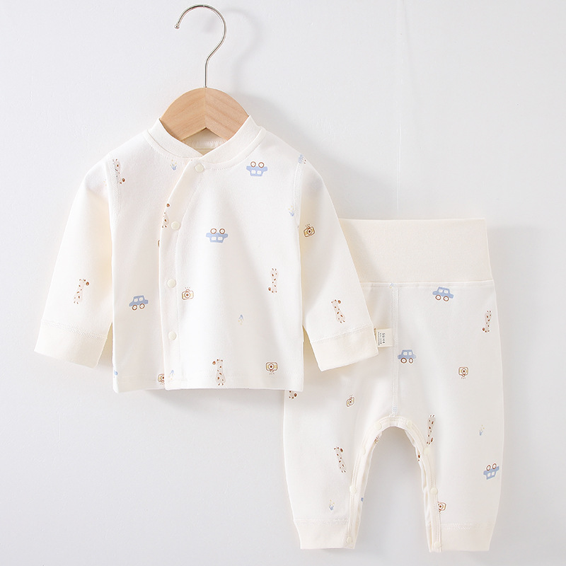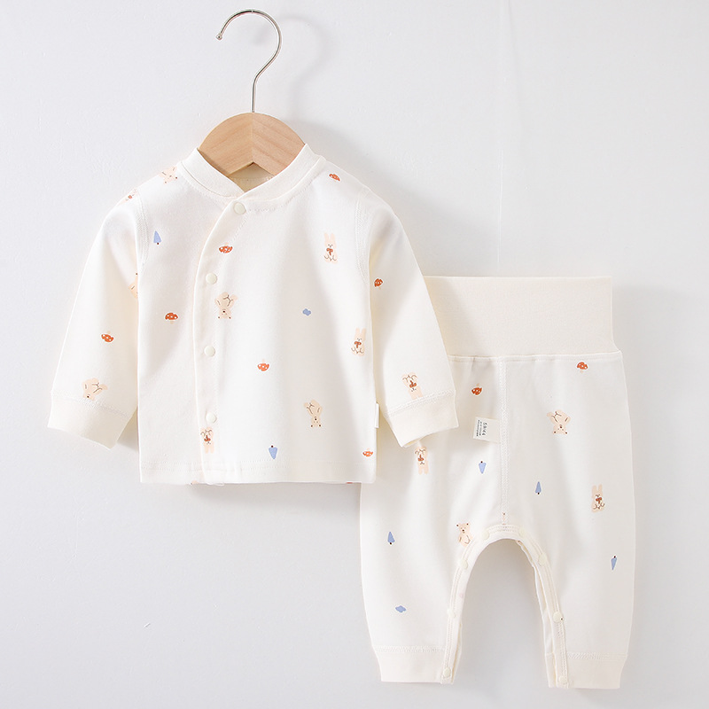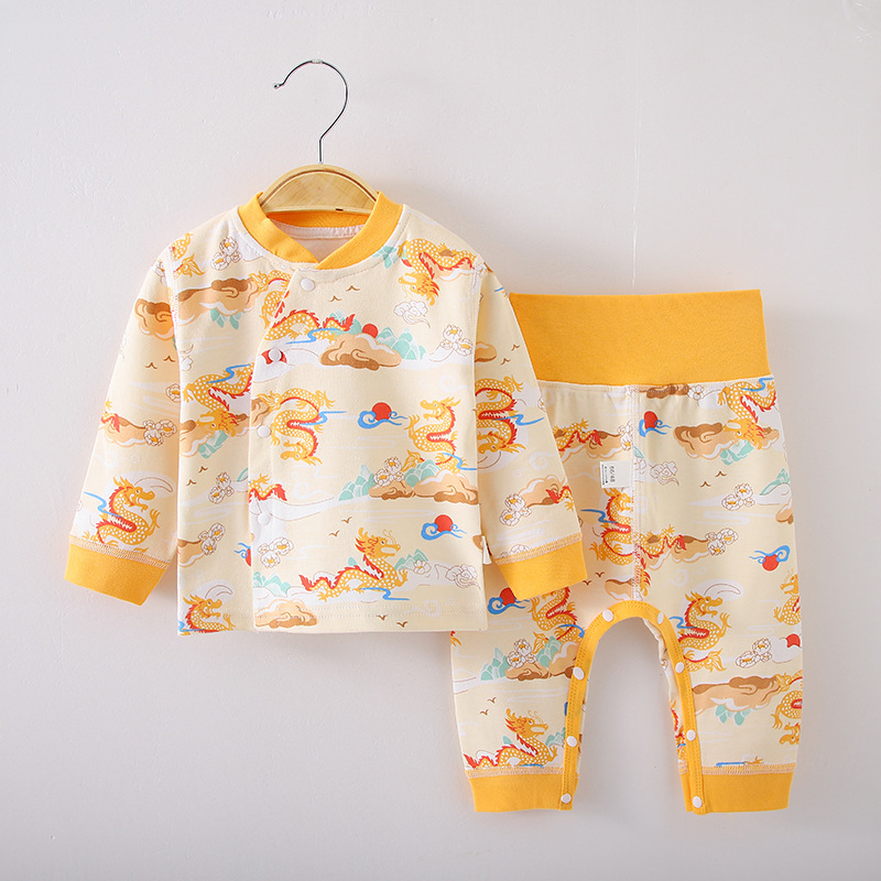 Осенний новый детский костюм нижнего белья из чистого хлопка с частичной пряжкой, Детская осенняя одежда, длинные кальсоны, мужские пижамы с высокой талией, защищающие живот, женские пижамы