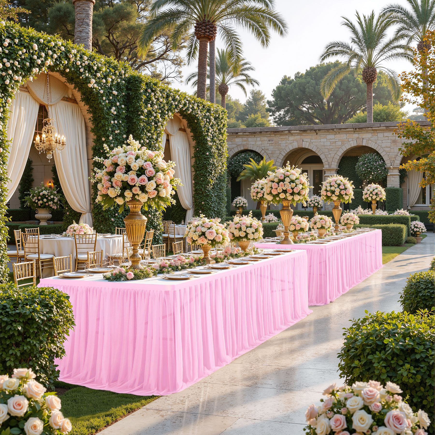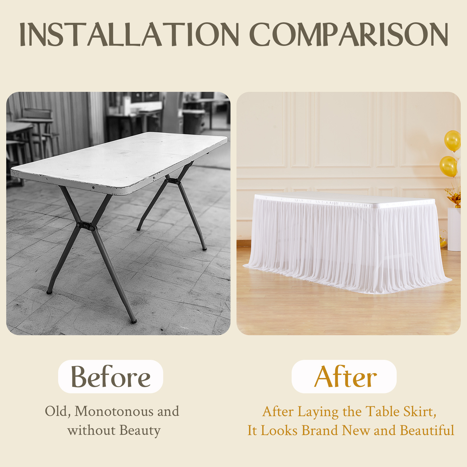 - 设计:经典优雅的桌裙设计,耐用、褶皱、无缝、耐脏,由专业级涤纶制成,可无数次清洗!由专业纺织工人制作,以提高桌裙的质量。