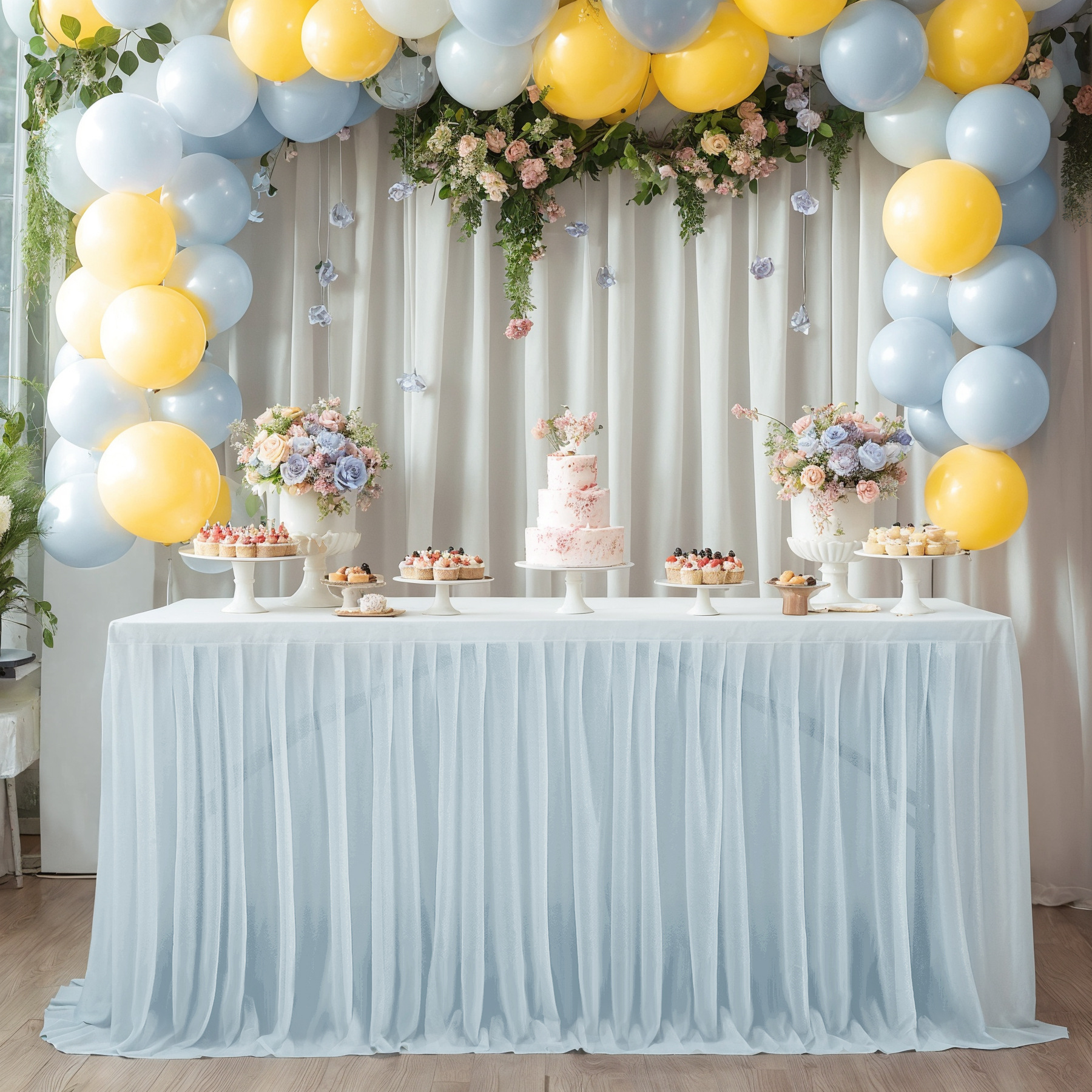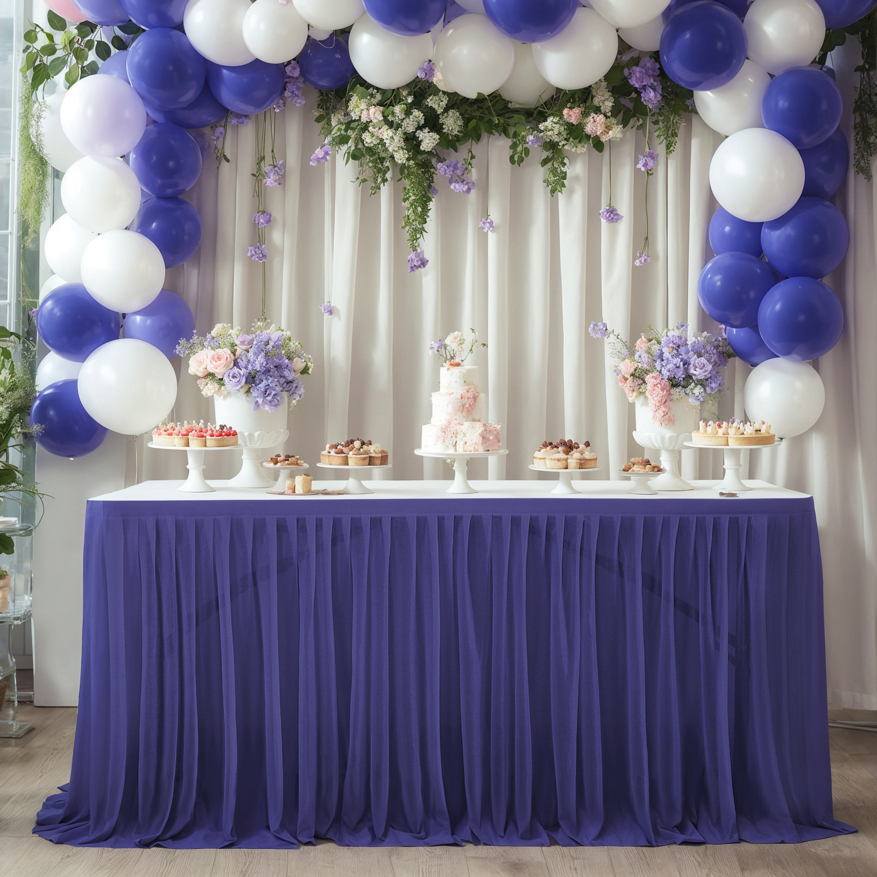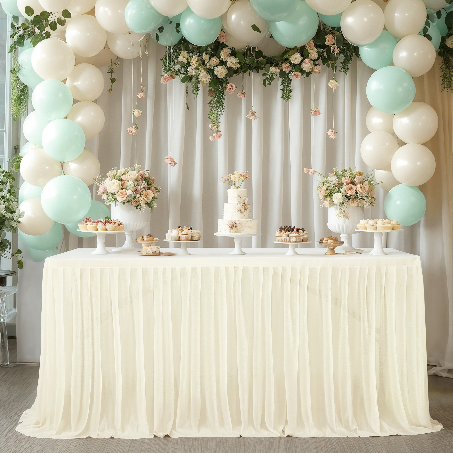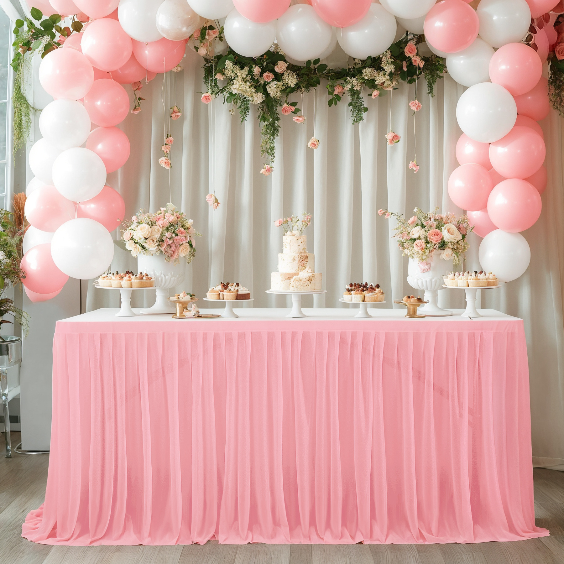 - 场合:褶皱桌裙,非常适合贸易展会婚礼招待会、甜点蛋糕桌、自助餐桌、迎婴派对、生日派对、餐厅会议、餐桌、礼品桌,适合各种活动,从日常餐厅使用到高端公司活动,婚礼招待,甚至是贸易展!