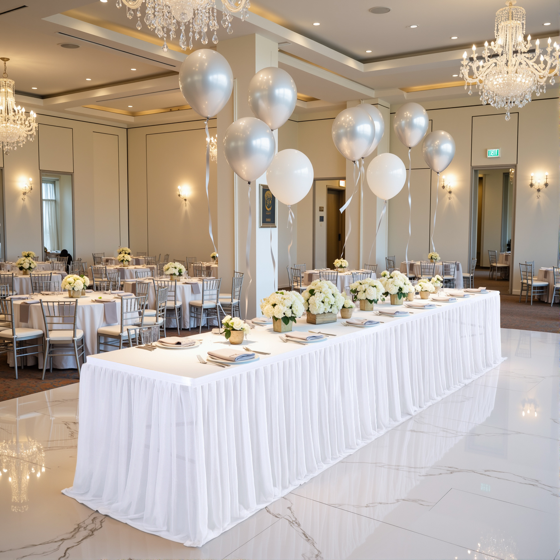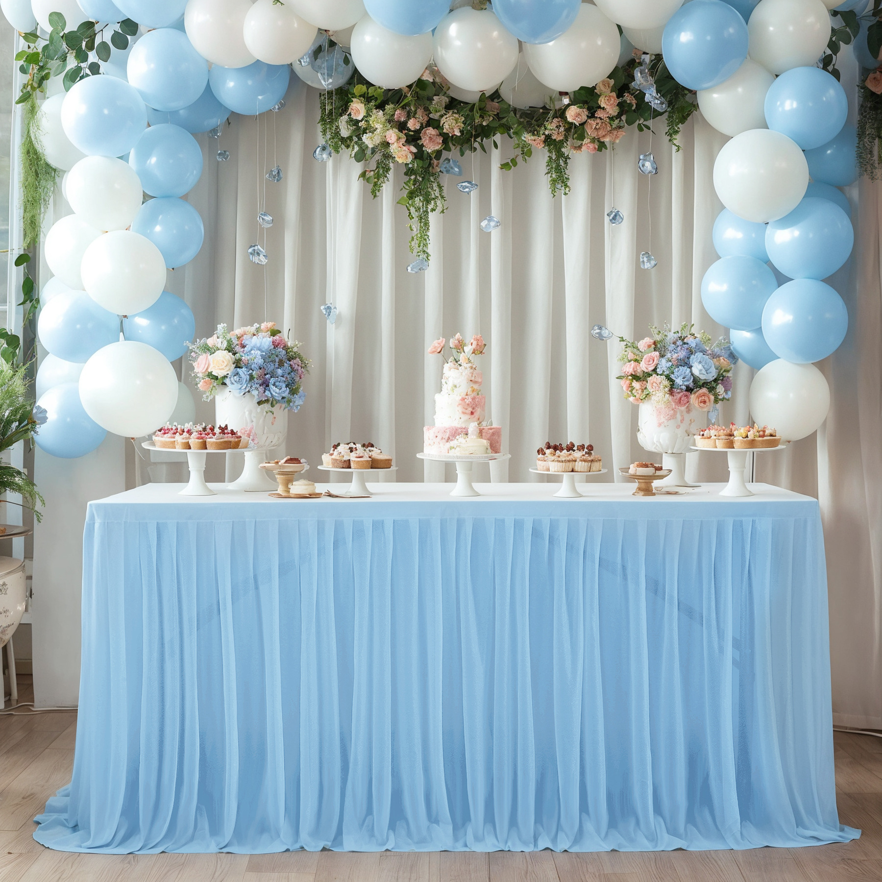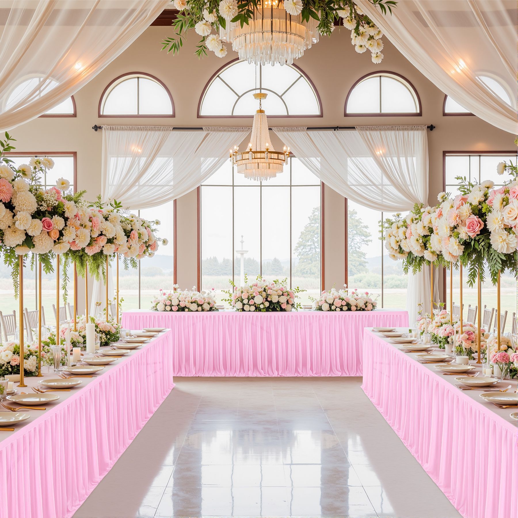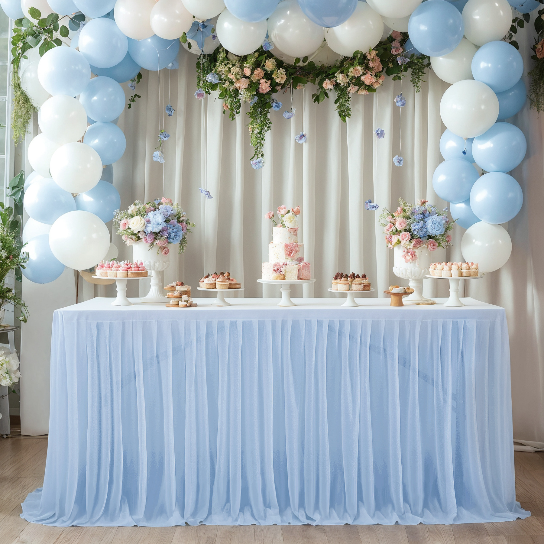 - 场合:褶皱桌裙,非常适合贸易展会婚礼招待会、甜点蛋糕桌、自助餐桌、迎婴派对、生日派对、餐厅会议、餐桌、礼品桌,适合各种活动,从日常餐厅使用到高端公司活动,婚礼招待,甚至是贸易展!