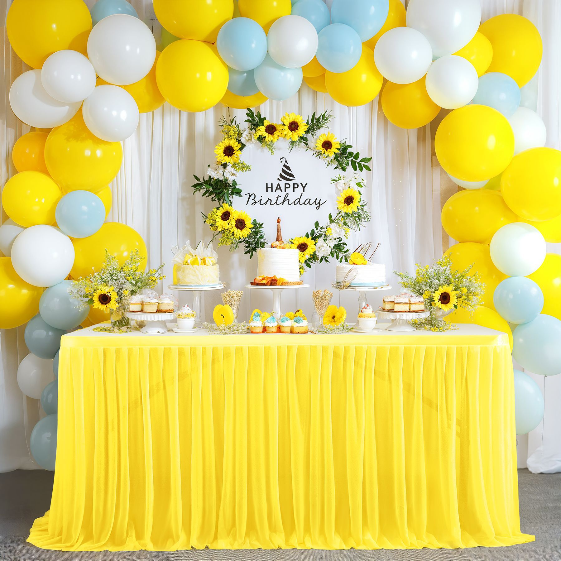- 材质:采用1层珍珠雪纺纱制成, 会有点透,介意者勿拍!适合儿童生日派对装饰,同时也非常适合用作婚礼装饰。