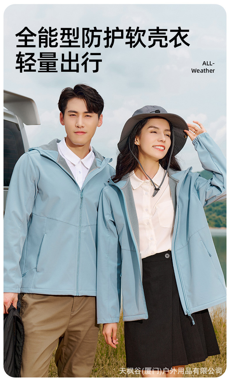 Открытый кемпинг мягкая оболочка одежда мужской бархат утолщенный ветрозащитный тепловой капюшон однослойное пальто женский водонепроницаемый топ на заказ
