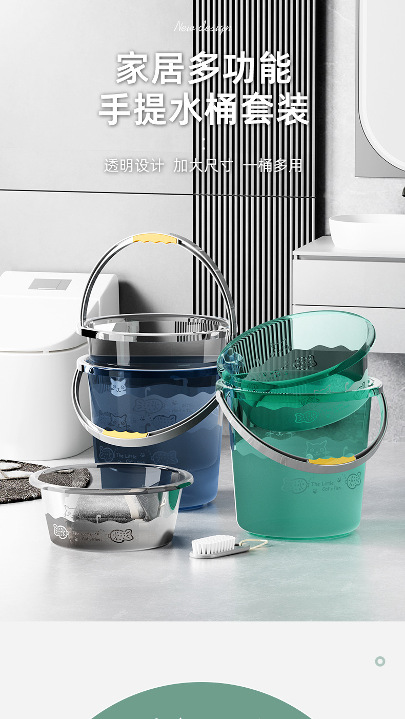 Ведро источника Бытовое ведро для хранения воды Пластиковое ведро Утолщенное большое ведро для ванны Ведро для белья Костюм для умывальника Автомобильное ведро