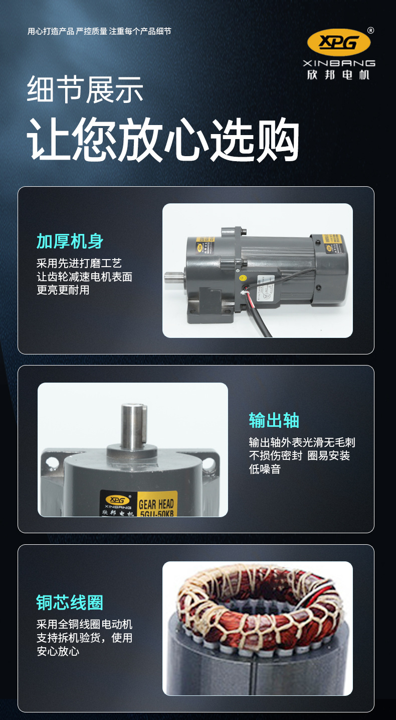 Редукторный двигатель XPG с регулировкой скорости, питание 220В переменного тока, 60Вт, однофазный/трехфазный, фиксированная низкая скорость, реверсивный
