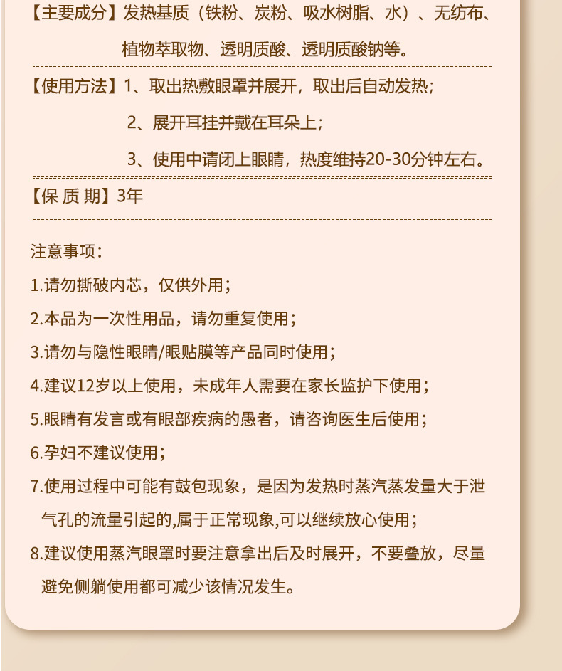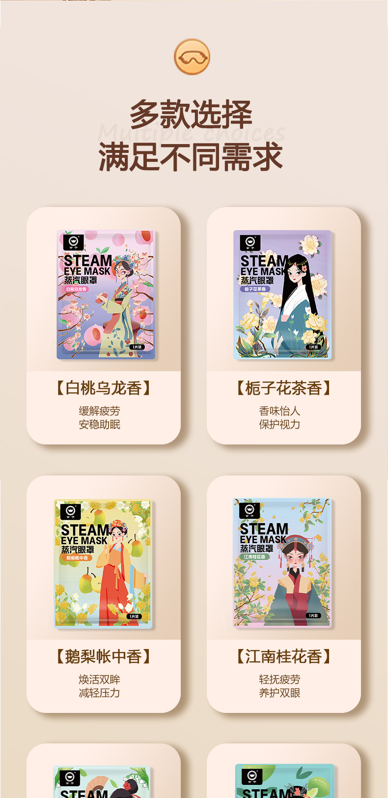 Маска для глаз с паровым эффектом в виде облака (5 шт./упаковка) (новинка от производителя); Паровая маска для глаз с красным пионом и цветком муми (5 листов/коробка) (новинка от производителя); Аромат белого персика и улуна (1 шт./пакет); Элегантный аромат для палатки (1 шт./пакет); Аромат османтуса Цзяннань (1 шт./пакет); Аромат чая Гардения (1 шт./пакетик); Аромат чая Лилия Луговая (1 шт/пакетик); Лайм, базилик, цитрусовые (1 шт./пакет); Маска для глаз на пару из полыни (1 шт./пакет); Паровая маска для глаз с черникой (1 шт./пакет); Паровая маска для глаз с ромашкой (1 шт./пакет); Маска для глаз с паром лаванды (1 шт./пакет); Маска для глаз на пару из полыни (аромат полыни) (1 шт./пакет); Маска для глаз паровая с гиалуроновой кислотой (5 шт./упак.); Аромат чая Гардения (10 шт./кор.); Аромат османтуса Цзяннань (10 шт./кор.); Белый персиковый улун (10 шт./кор.); Аромат чая Лилия Луговая (10 таблеток/упаковка); Элегантный аромат для палатки (10 шт./кор.); Лайм, базилик, цитрусовые (10 ломтиков в коробке); Паровая маска для глаз с черникой (5 шт./упак.); Паровая маска для глаз с лютеином (5 шт./упак.); Паровая маска для глаз с ромашкой (5 шт./упак.); Маска для глаз паром из полыни (5 шт./кор.)