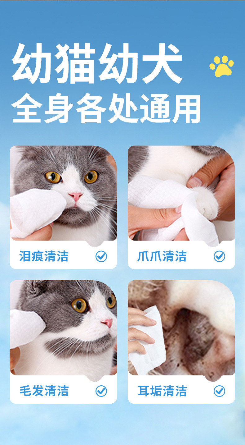 [30 упаковок с бесплатной доставкой] Влажные салфетки Every Pet для кошек и собак, очень большие и плотные, для очищения глаз и ушей, оптовая продажа, индивидуальный заказ.
