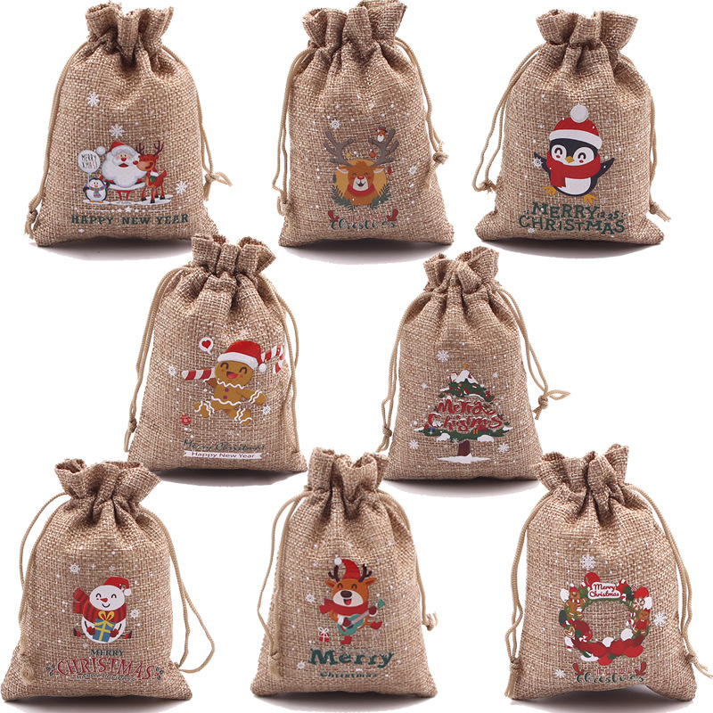 Трансграничные рождественские льняные пакеты конфеты закуски упаковочные пакеты для хранения подарочные пакеты в наличии оптом