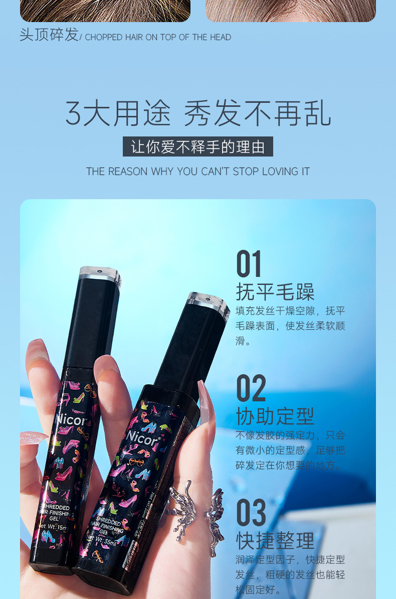 Nicor Сломанные Волосы Stick Женская Сломанные Волосы Отделка Гель Крем Stick Портативный Anti-Frizz Не Жирные Сломанные Волосы Артефакт Универсальный