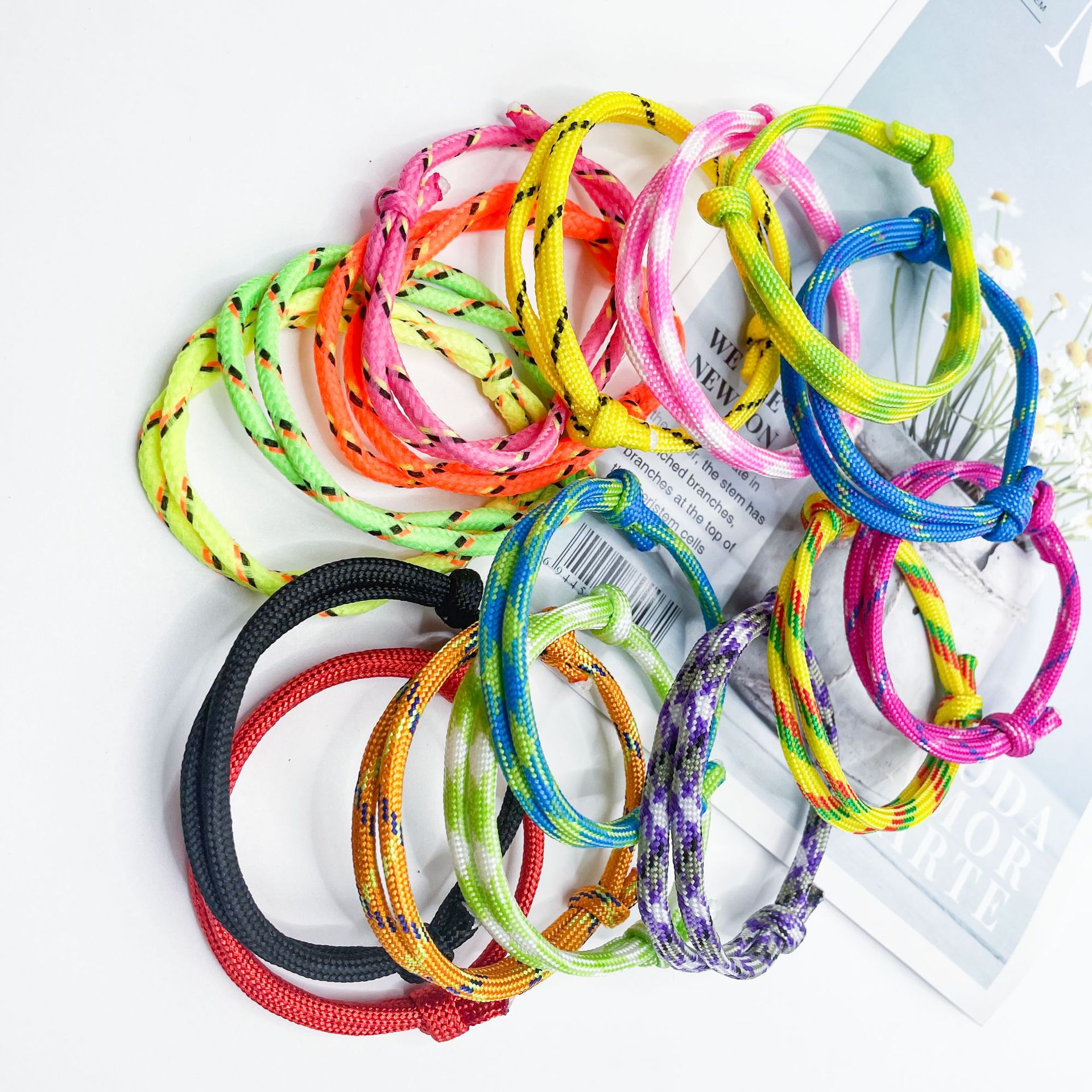 Amazon Новая неоновая цветная веревка Браслет дружбы Подростковая Регулируемая плетеная Ручная Веревка Детский креативный подарок