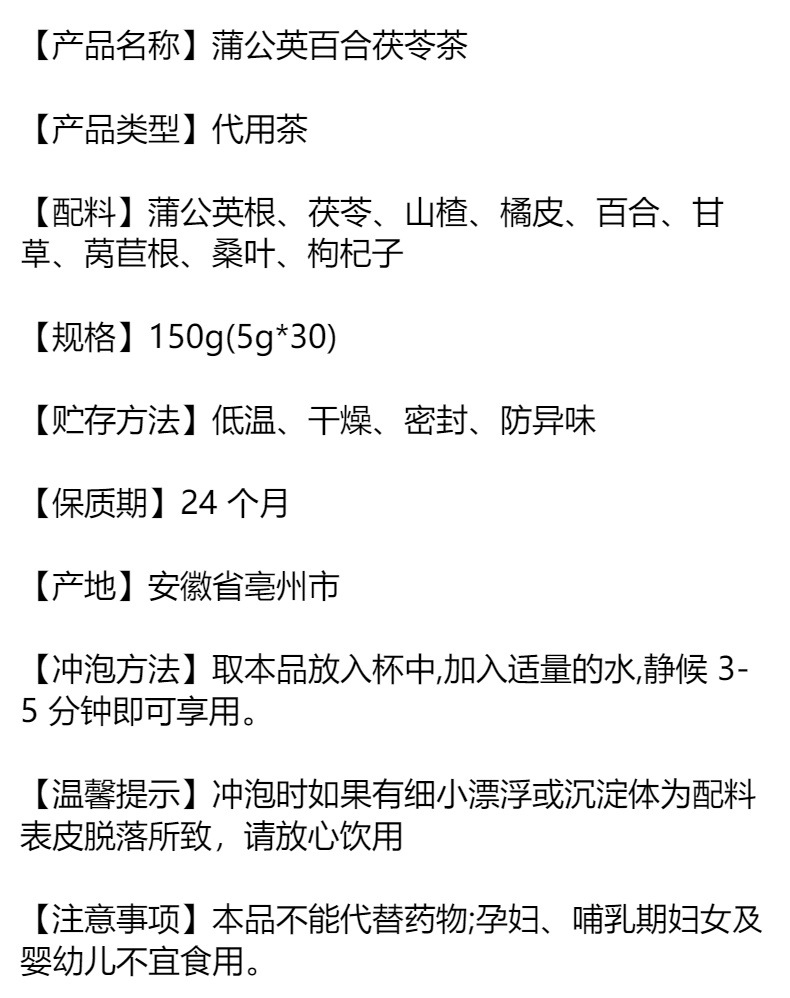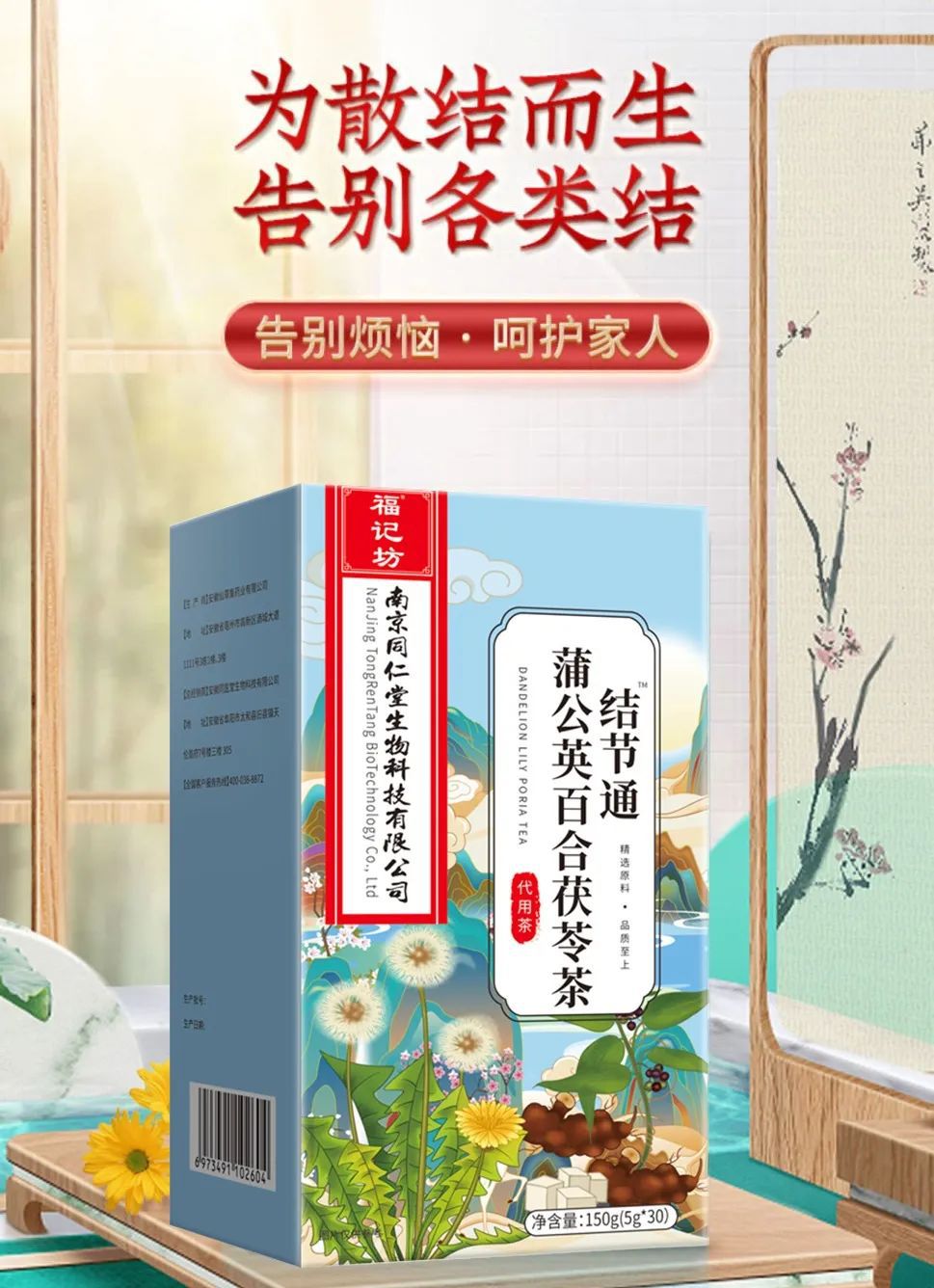 Чайный напиток Nanjing Tongrentang Biotechnology Co., Ltd. на основе одуванчика, лилии и пории, заменяющий чай для лимфатических узлов