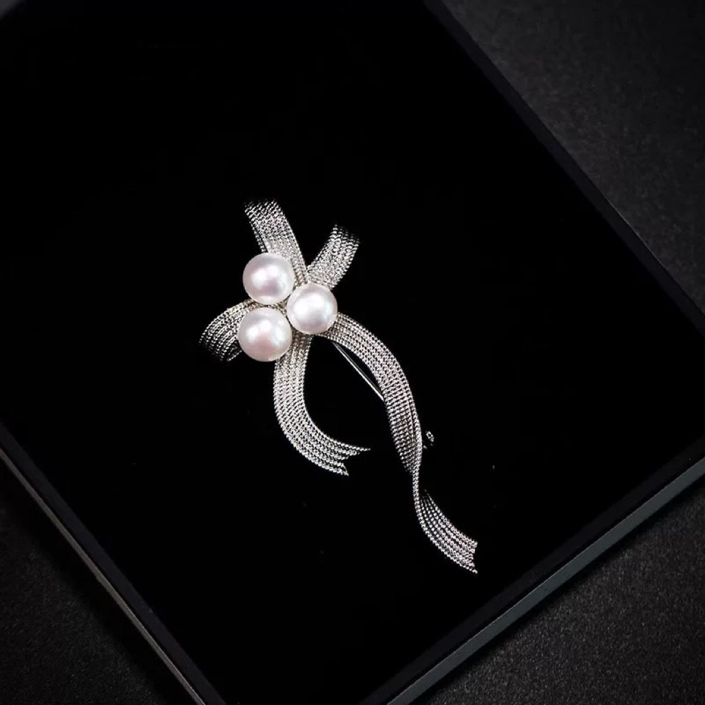 Осенняя новинка: брошь из пресноводного жемчуга с бантом, элитный дизайн, застежка-антиэкспозиция, в стиле Ins