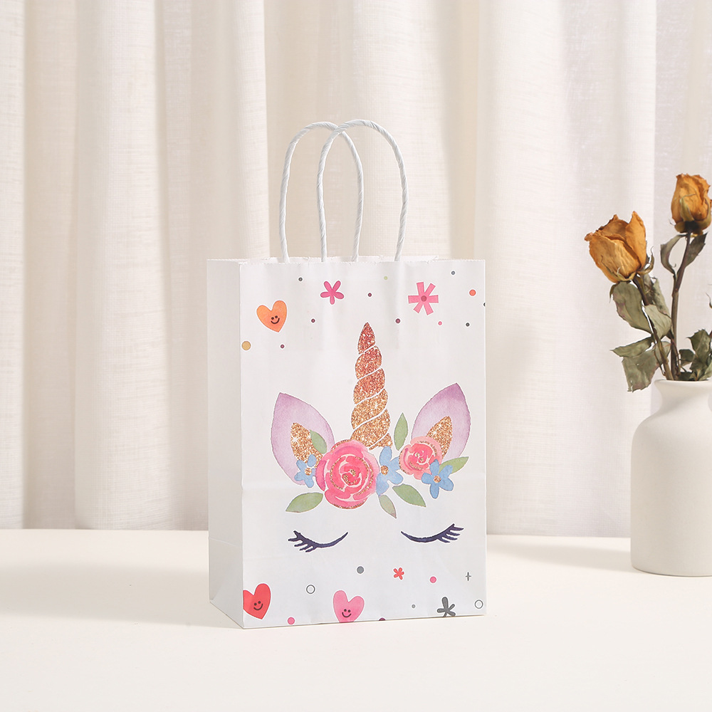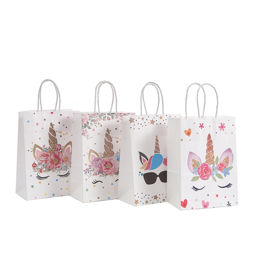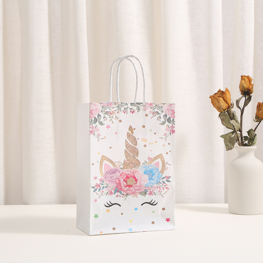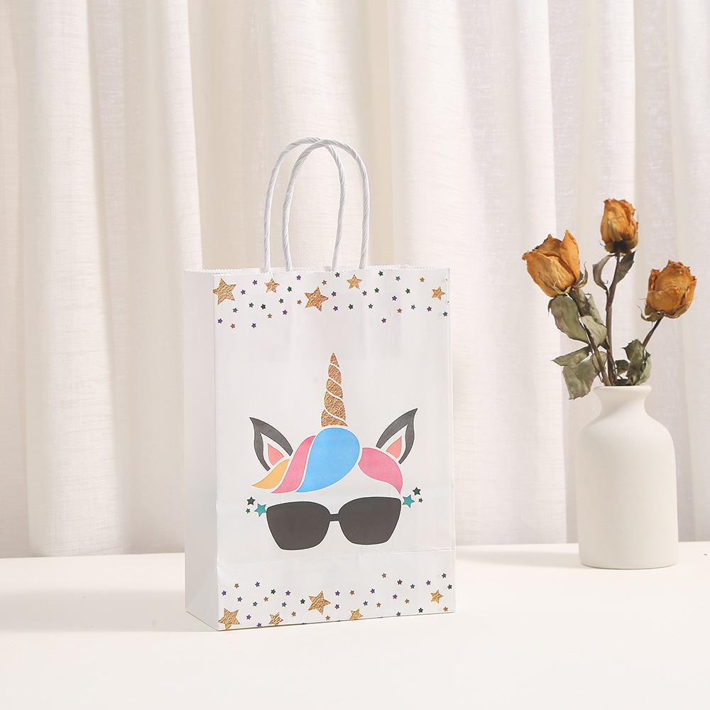 Мультфильм Большая Сумка крафт-бумага Единорог печать бронзовая сумка для покупок подарок на день рождения Подарочная сумка оптом