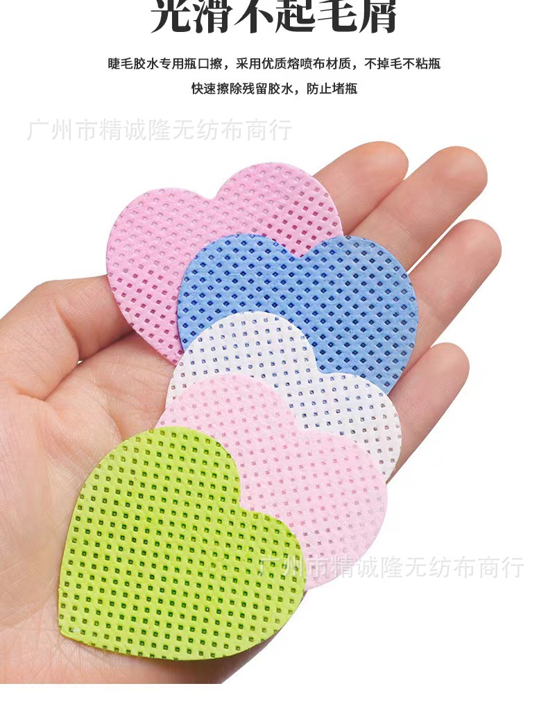 Специальный клей для наращивания ресниц, чистящие ватные диски в форме сердца, салфетки для протирания горлышек бутылок, средство для снятия макияжа с ресниц после наращивания, нетканые салфетки для бутылок с клеем.