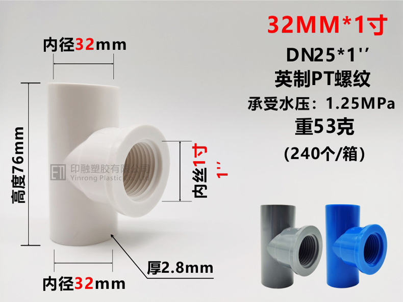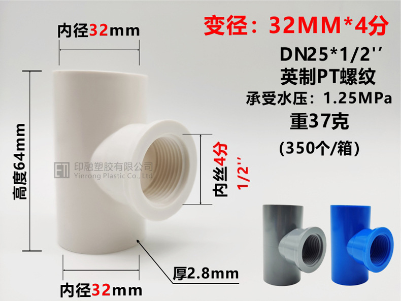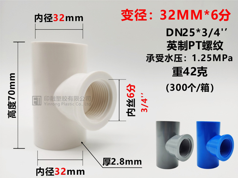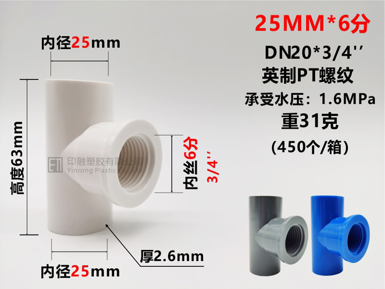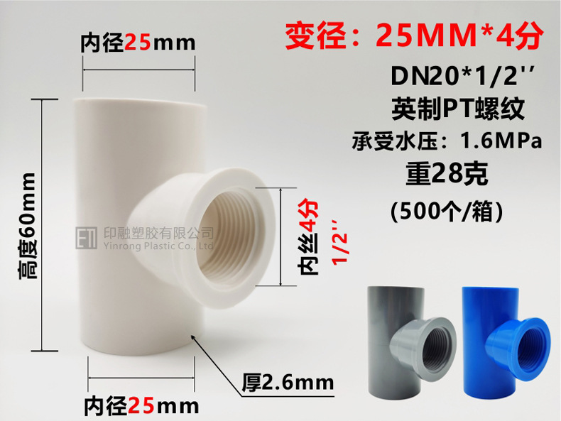 Тройник с внутренней проволокой из ПВХ 20 * от 1/25 до 4 минут от 32 мм до 6 минут 1 дюйм 3/4 фитинги для водоснабжения с внутренней резьбой
