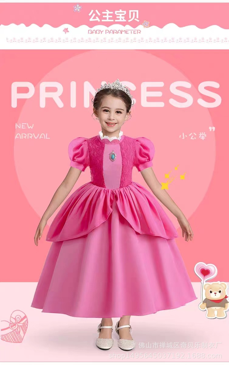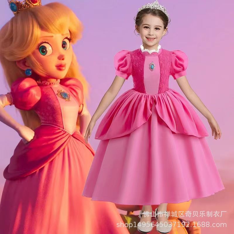 Платье принцессы Супер Марио Персик, розовое платье, детское платье, розовая одежда для девочек