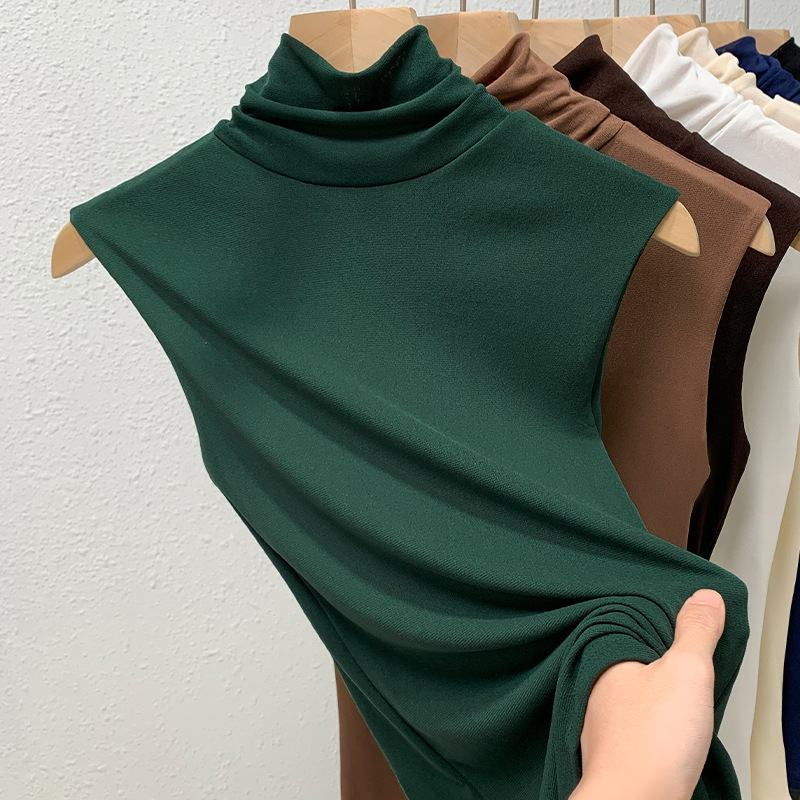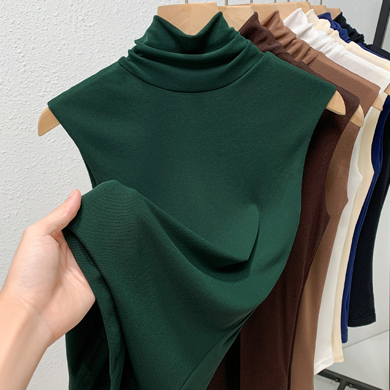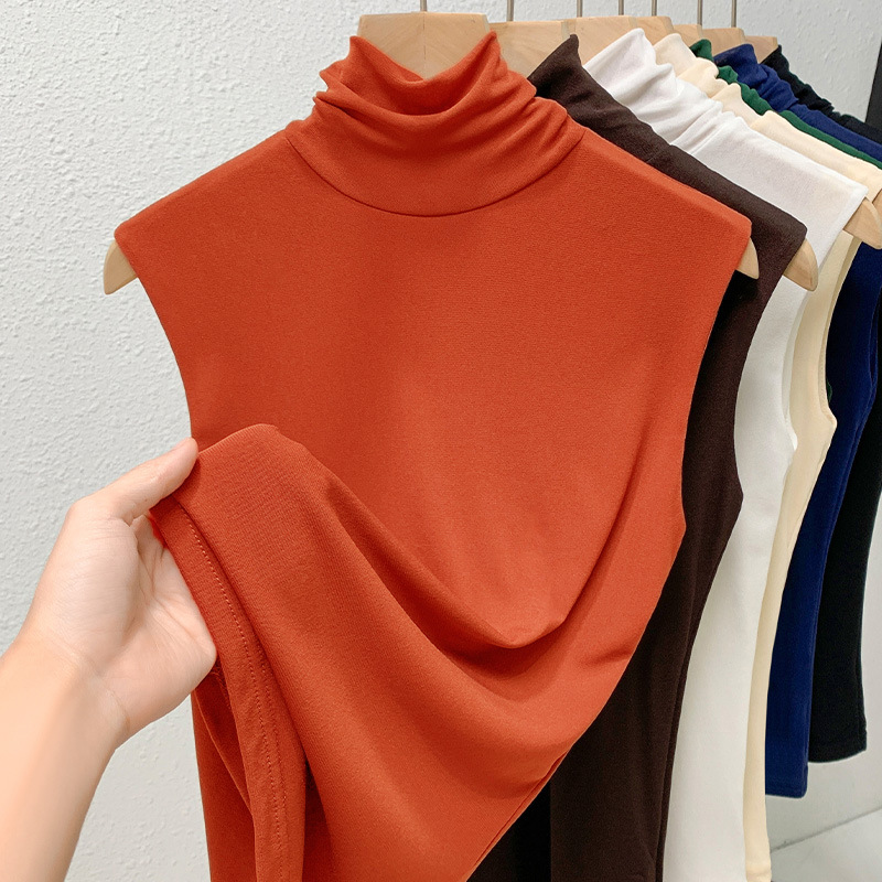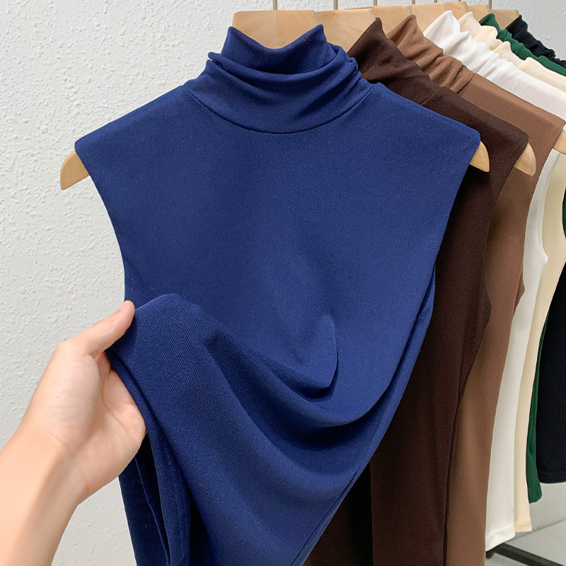 Женская базовая футболка с высоким воротом 2026, женская однотонная сетчатая рубашка, нижняя одежда, топ без рукавов с эффектом утяжки талии, белый базовый слой.
