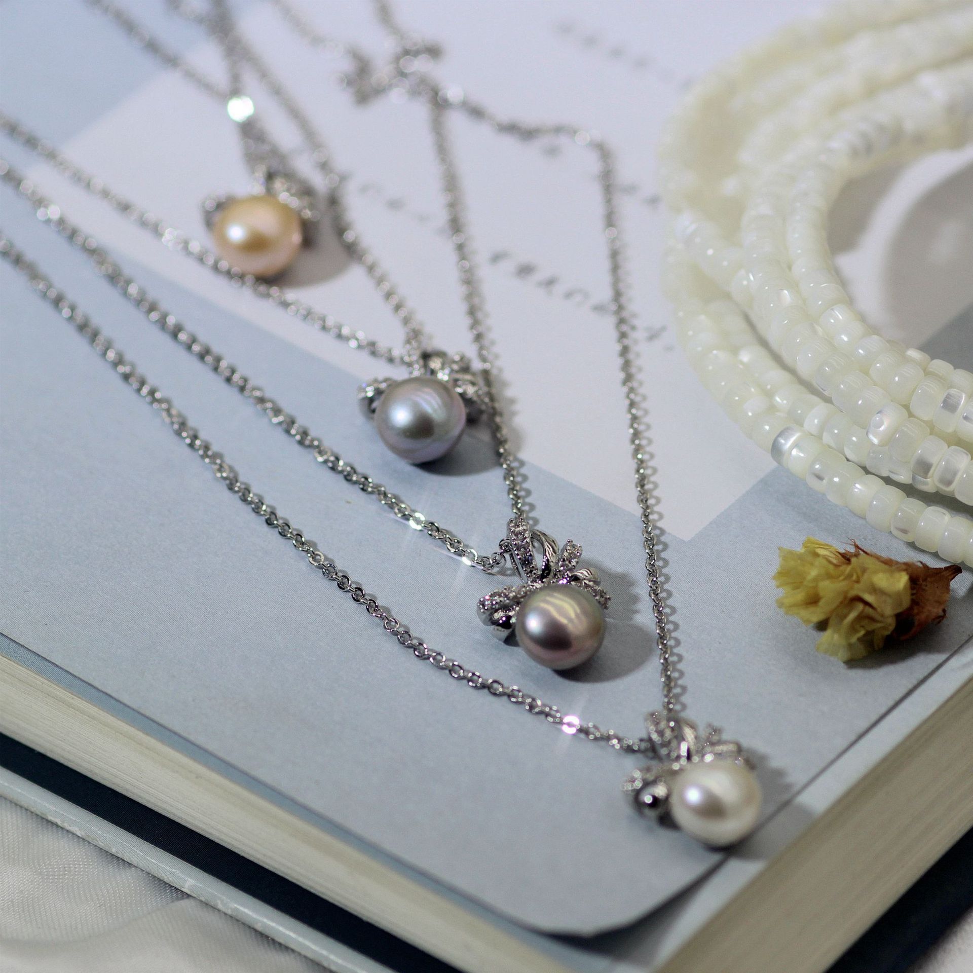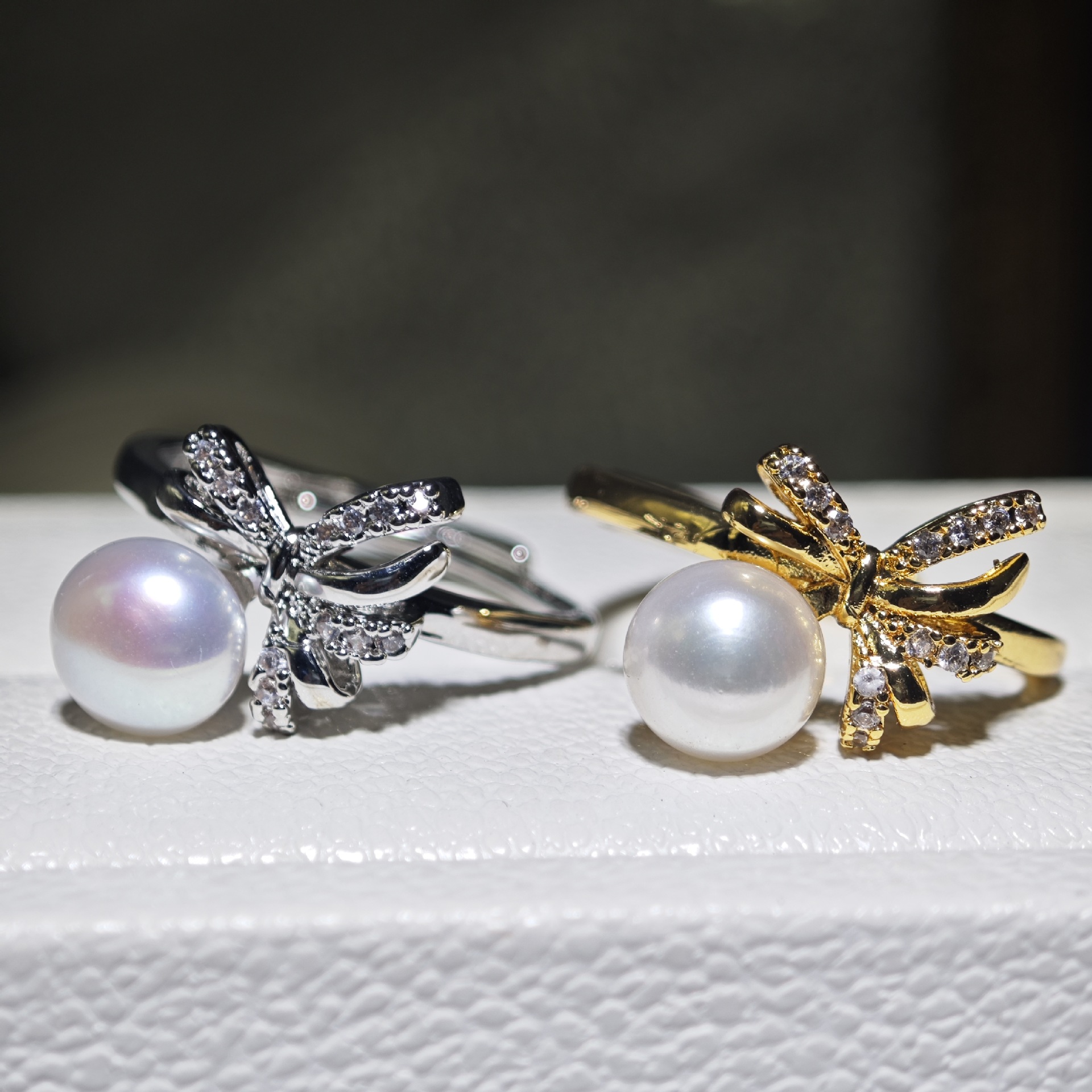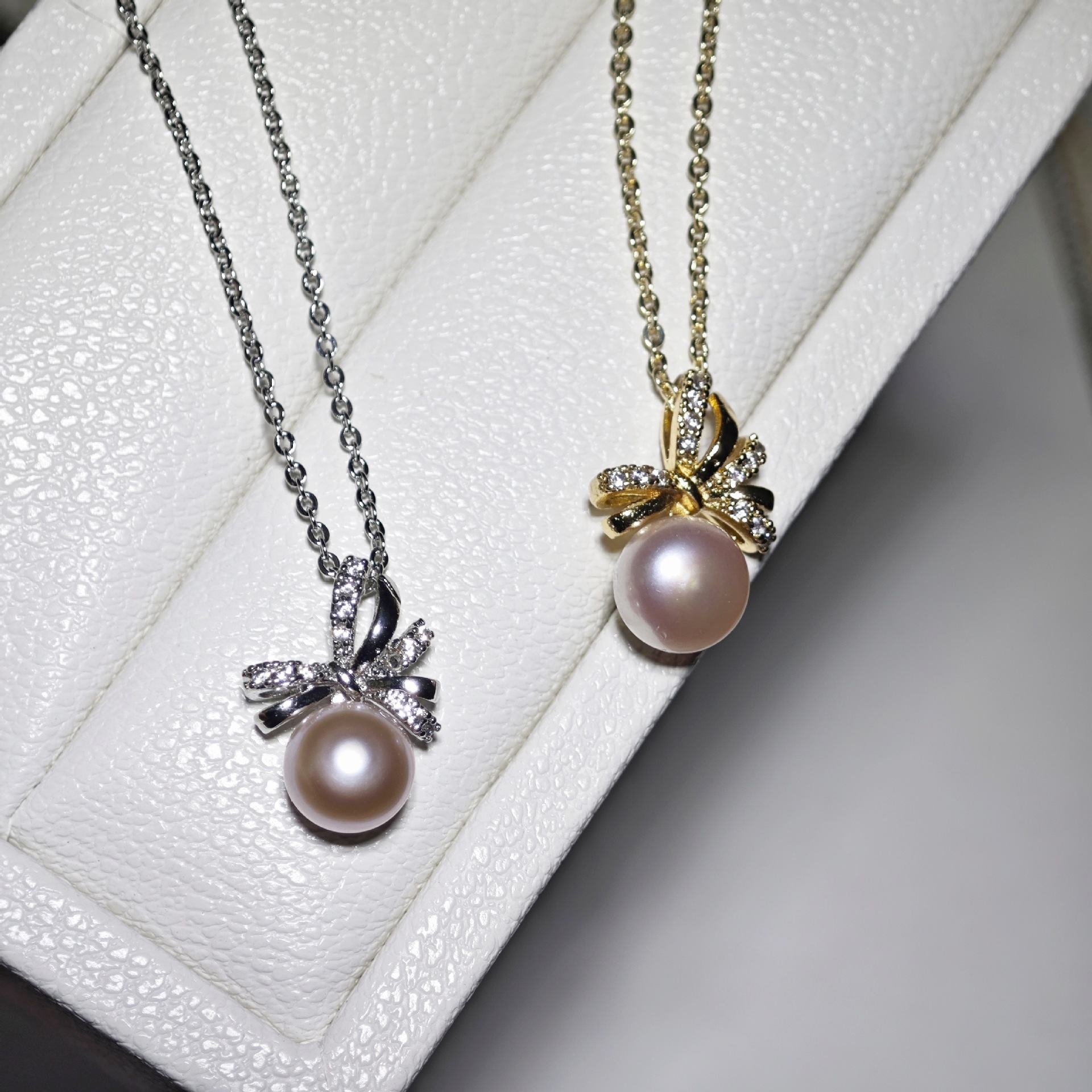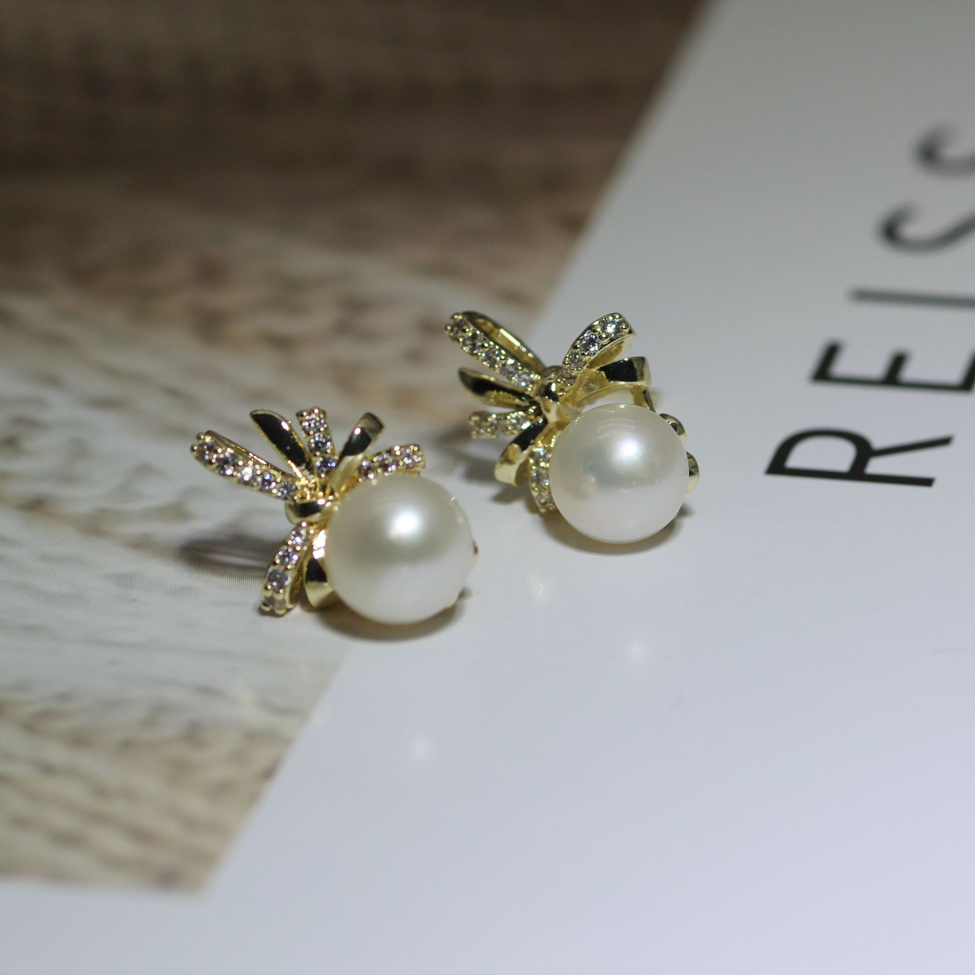 Жемчужные серьги Zhuji с серебряными штифтами S925, бренд M, в том же стиле, что и у Реба, серьги-бантики, кулон и кольцо — комплект украшений из трех предметов.