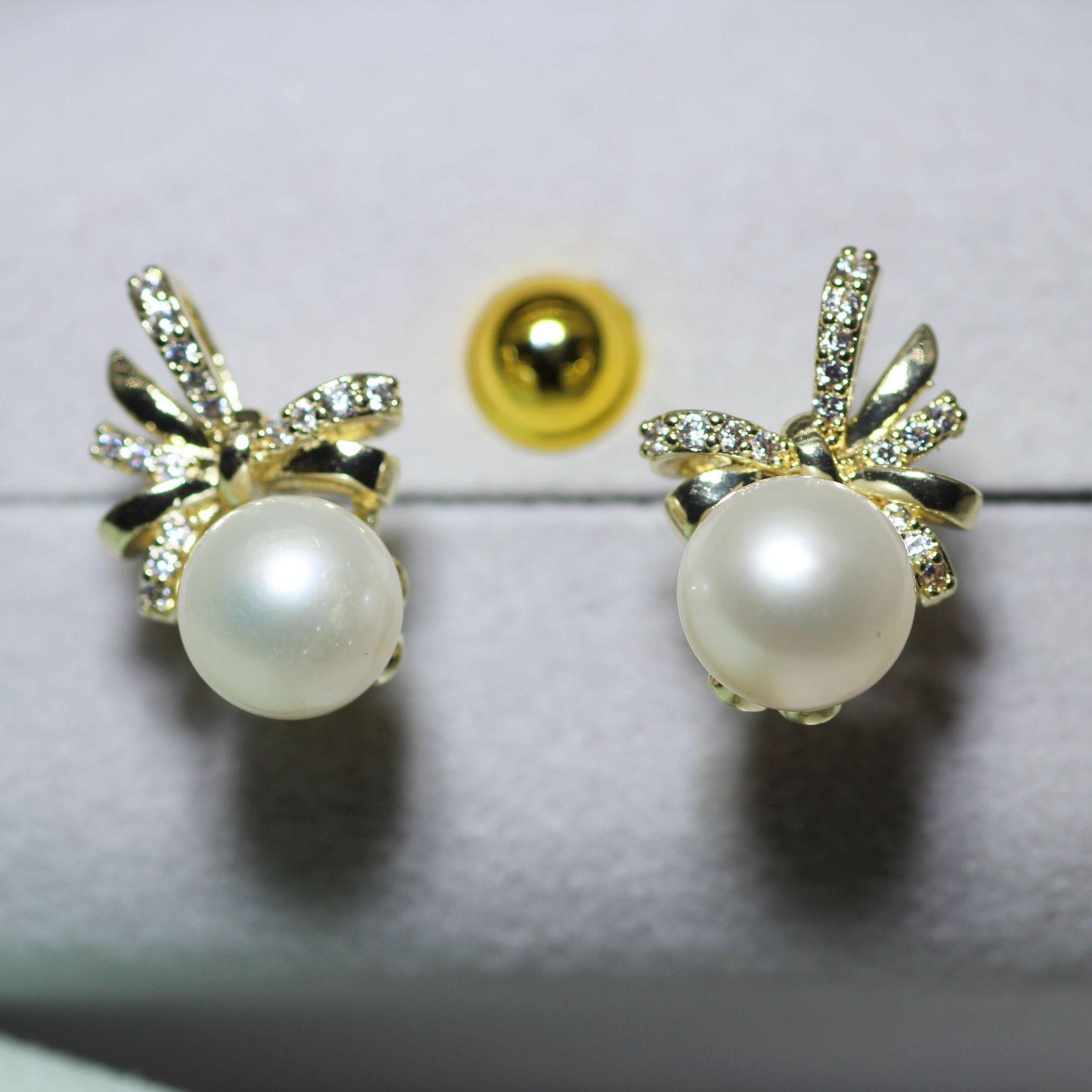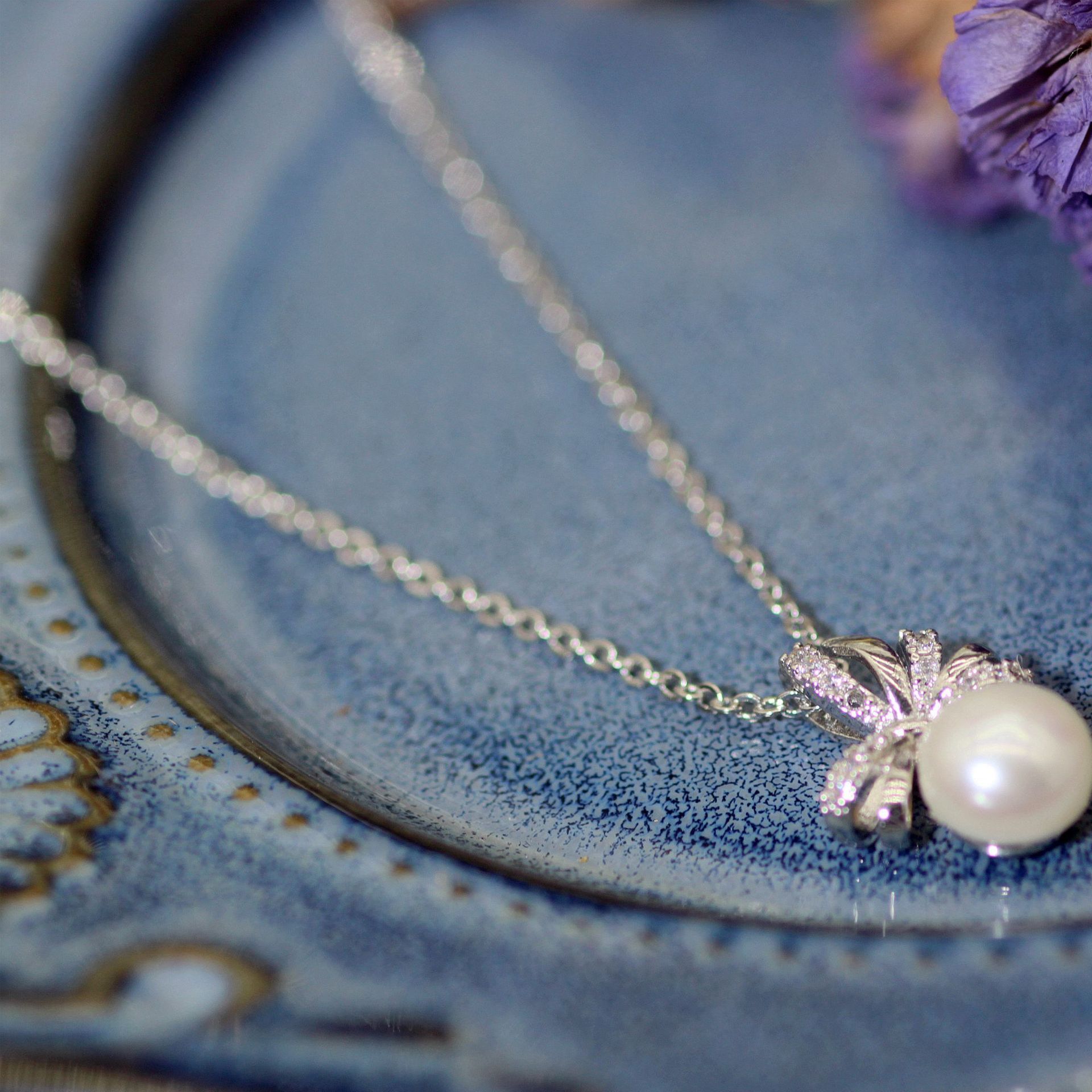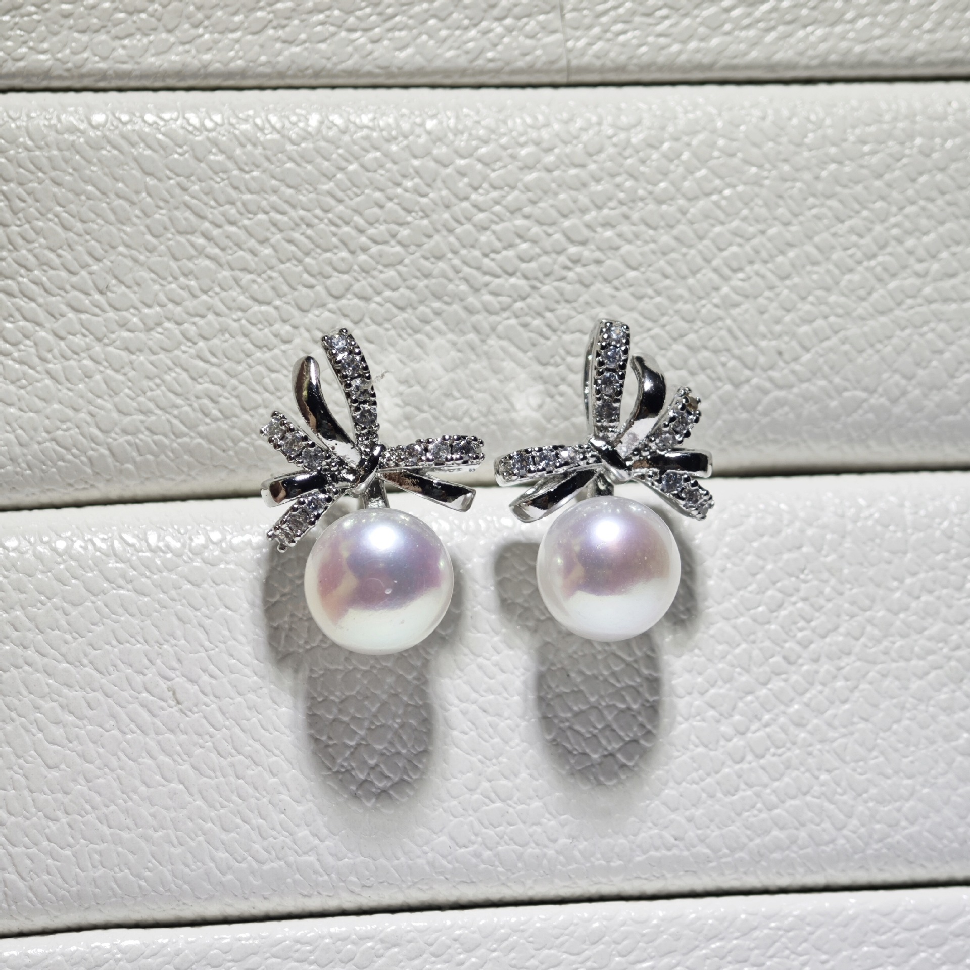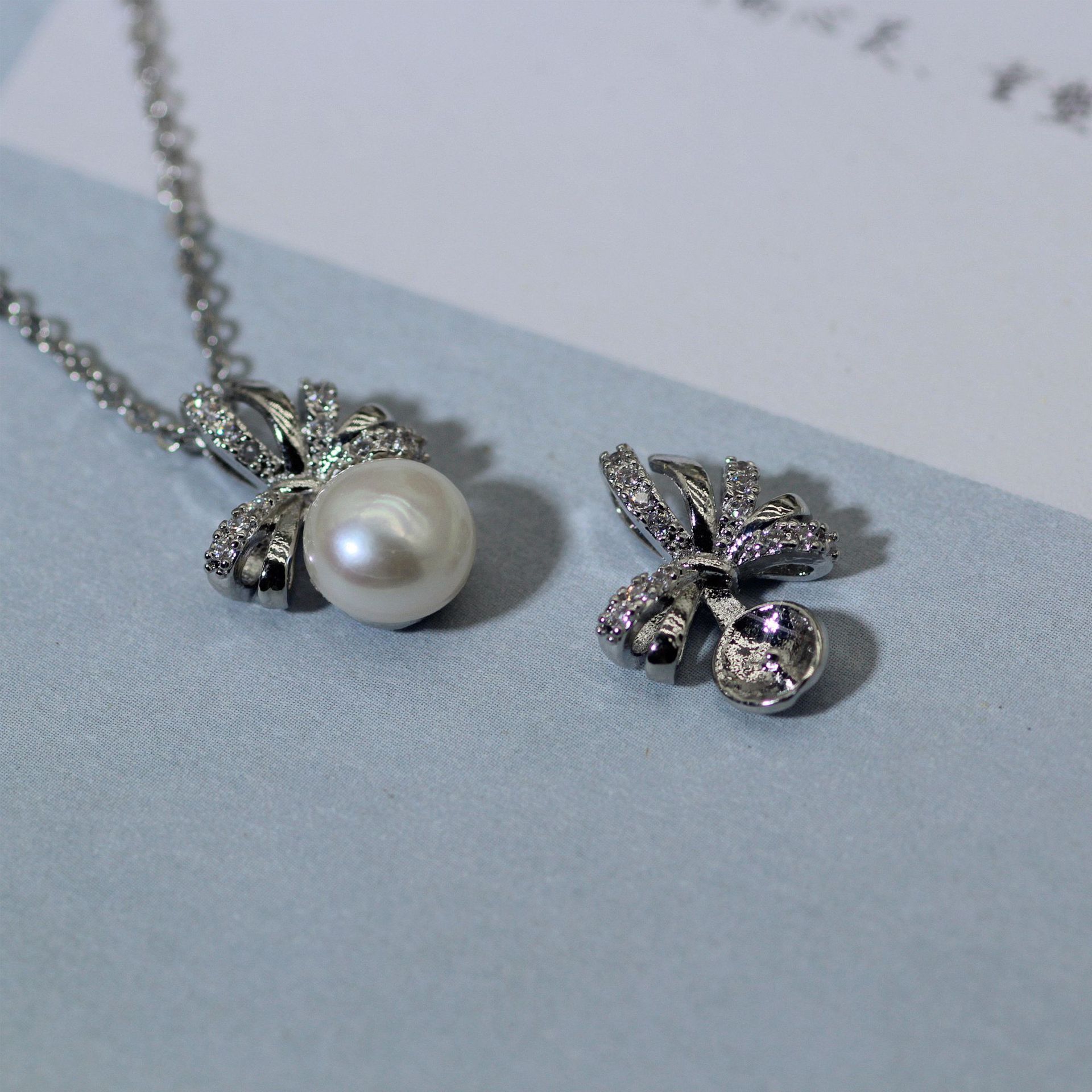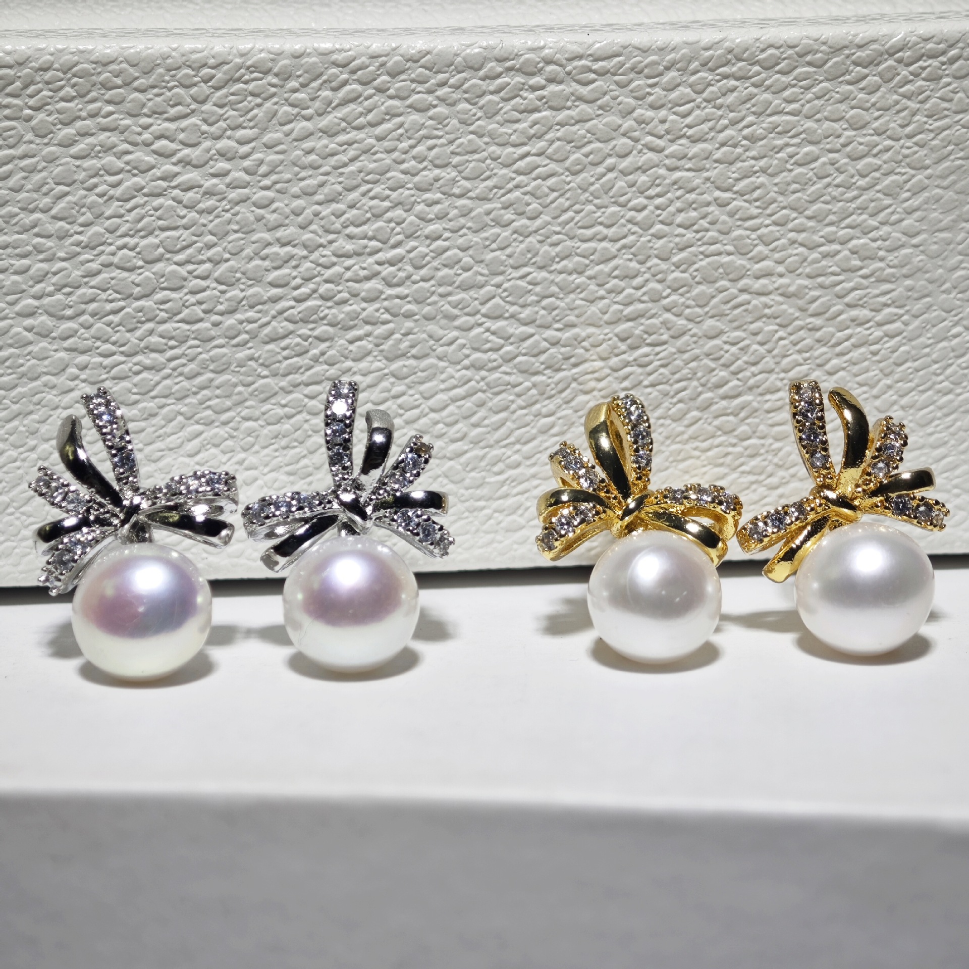 Жемчужные серьги Zhuji с серебряными штифтами S925, бренд M, в том же стиле, что и у Реба, серьги-бантики, кулон и кольцо — комплект украшений из трех предметов.