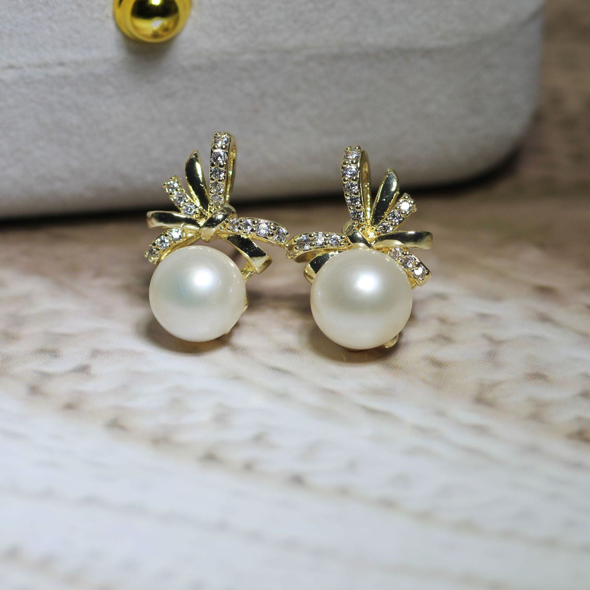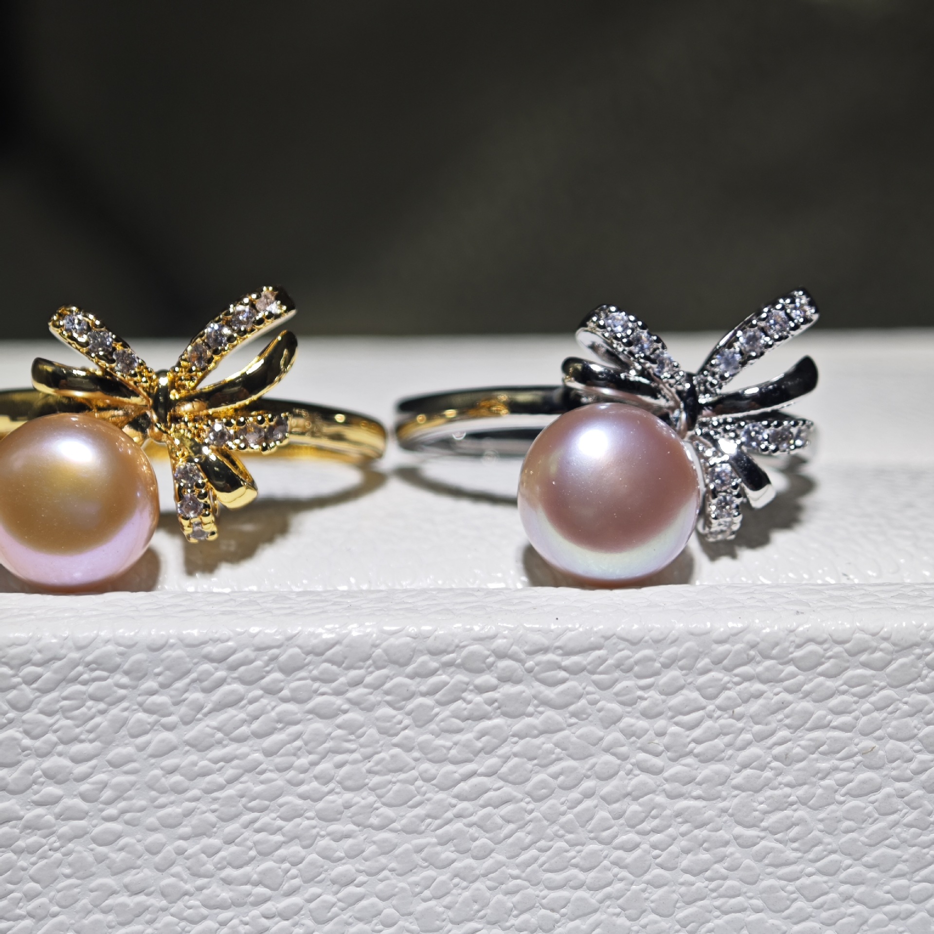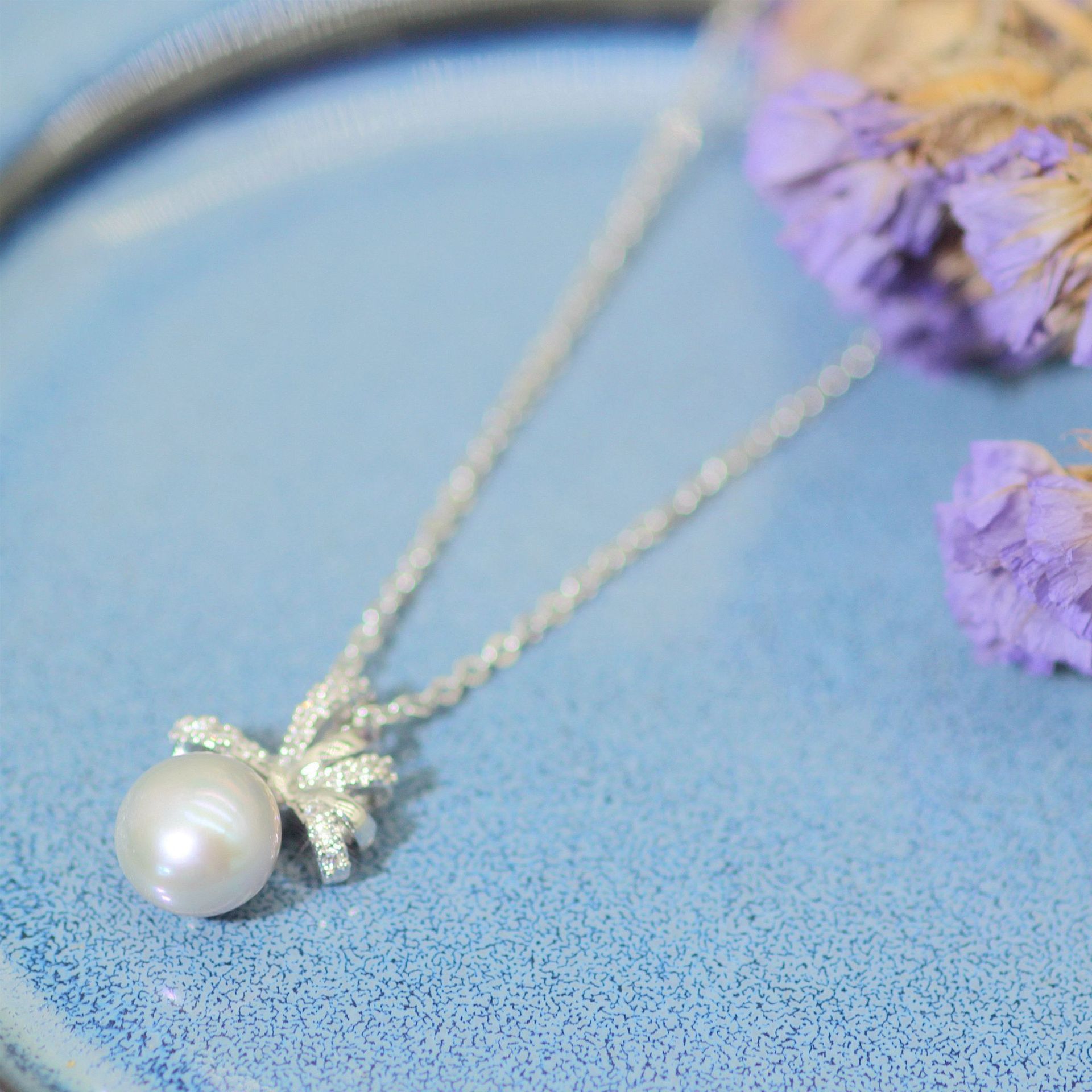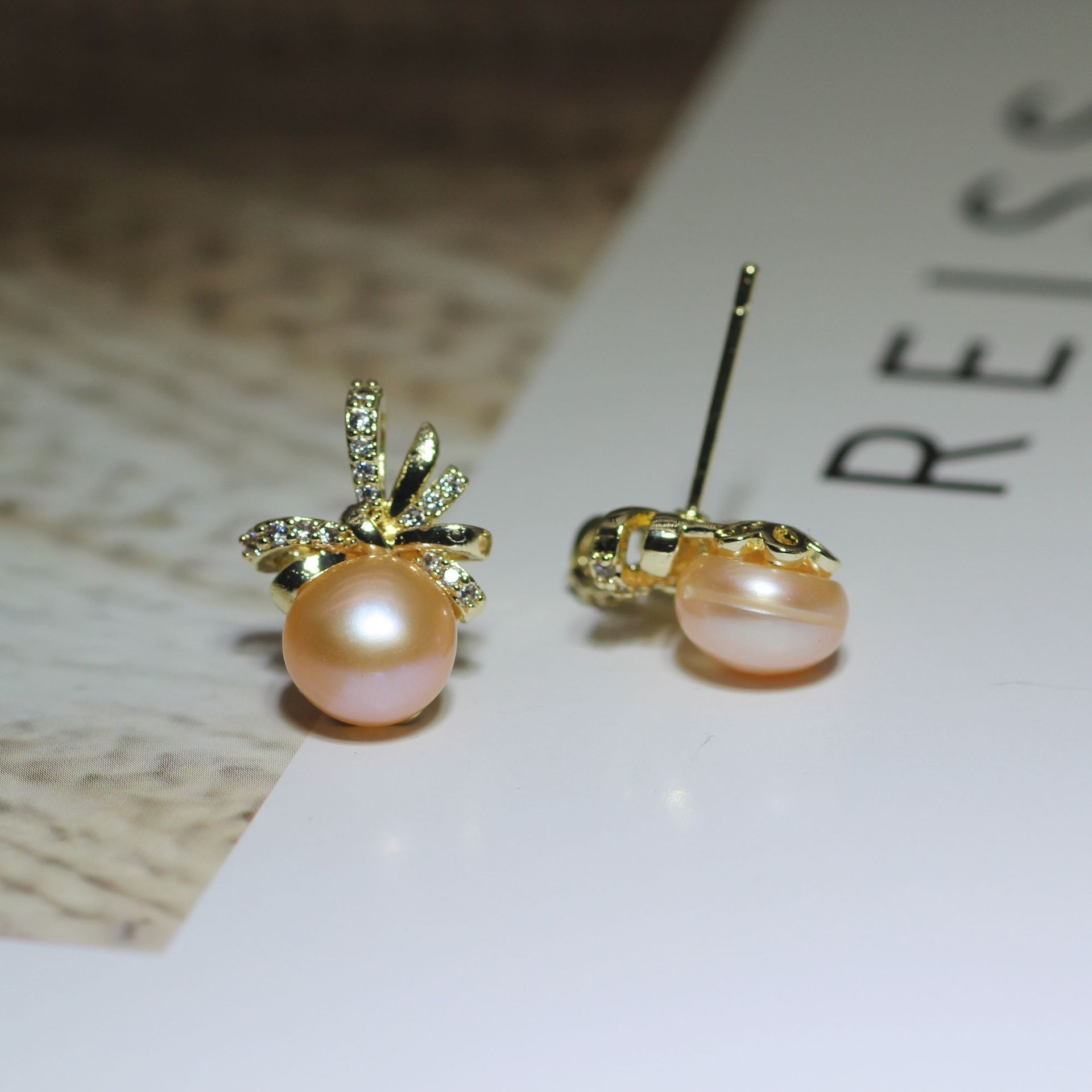 Жемчужные серьги Zhuji с серебряными штифтами S925, бренд M, в том же стиле, что и у Реба, серьги-бантики, кулон и кольцо — комплект украшений из трех предметов.