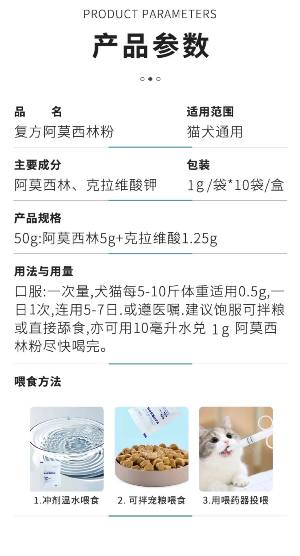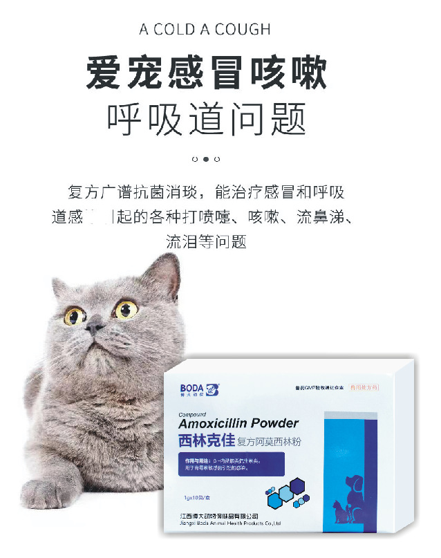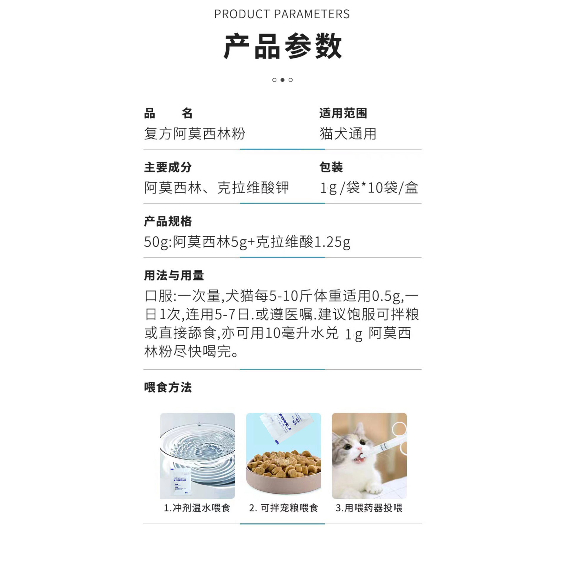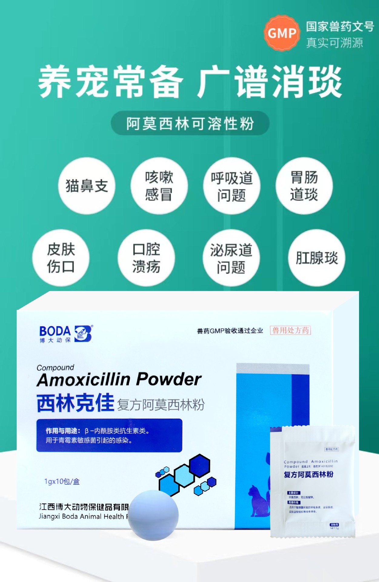 Смешанный порошок амоксицилина для беременных и юных животных, собак и кошек, при заложенности носа, простуде, кашле, заболеваниях дыхательных путей, мочевыводящих путей, инфекциях ран.