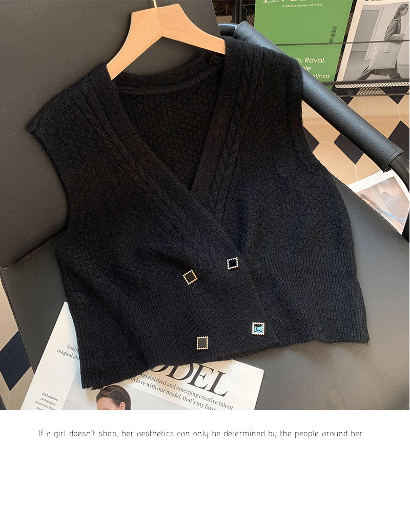 Большой однотонный вязаный жилет с v-образным вырезом для женщин, чтобы носить на улице, новый кардиган 2025 года, модная женская куртка без рукавов в корейском стиле