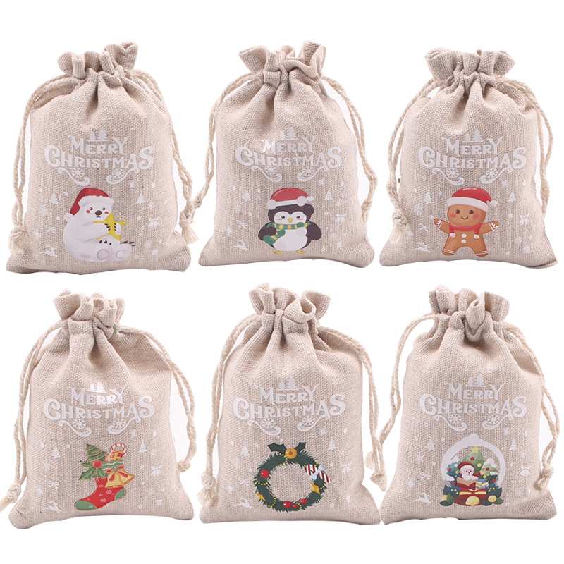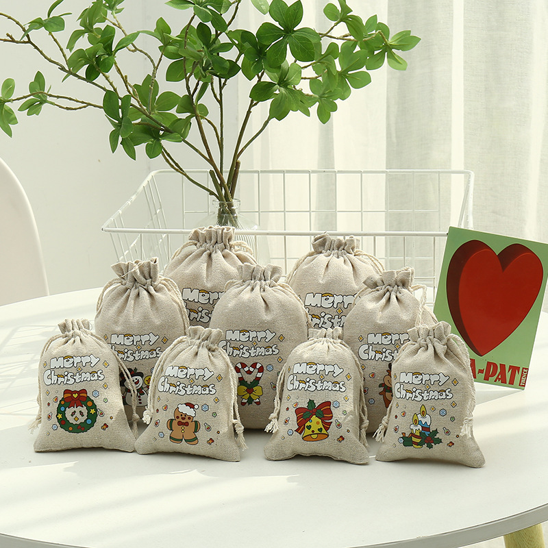 В наличии Рождественский хлопок на шнурке Карман для конфет Shuang Dan Party Декоративная сумка для закуски для печенья Рождественская подарочная сумка
