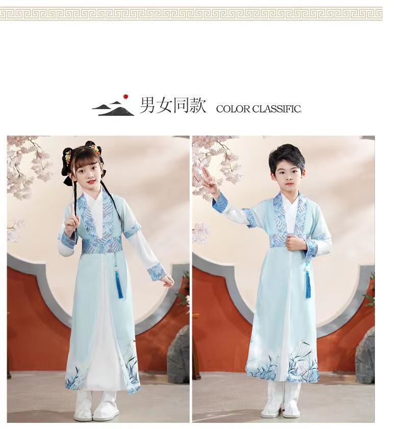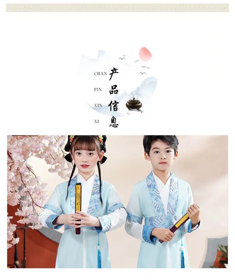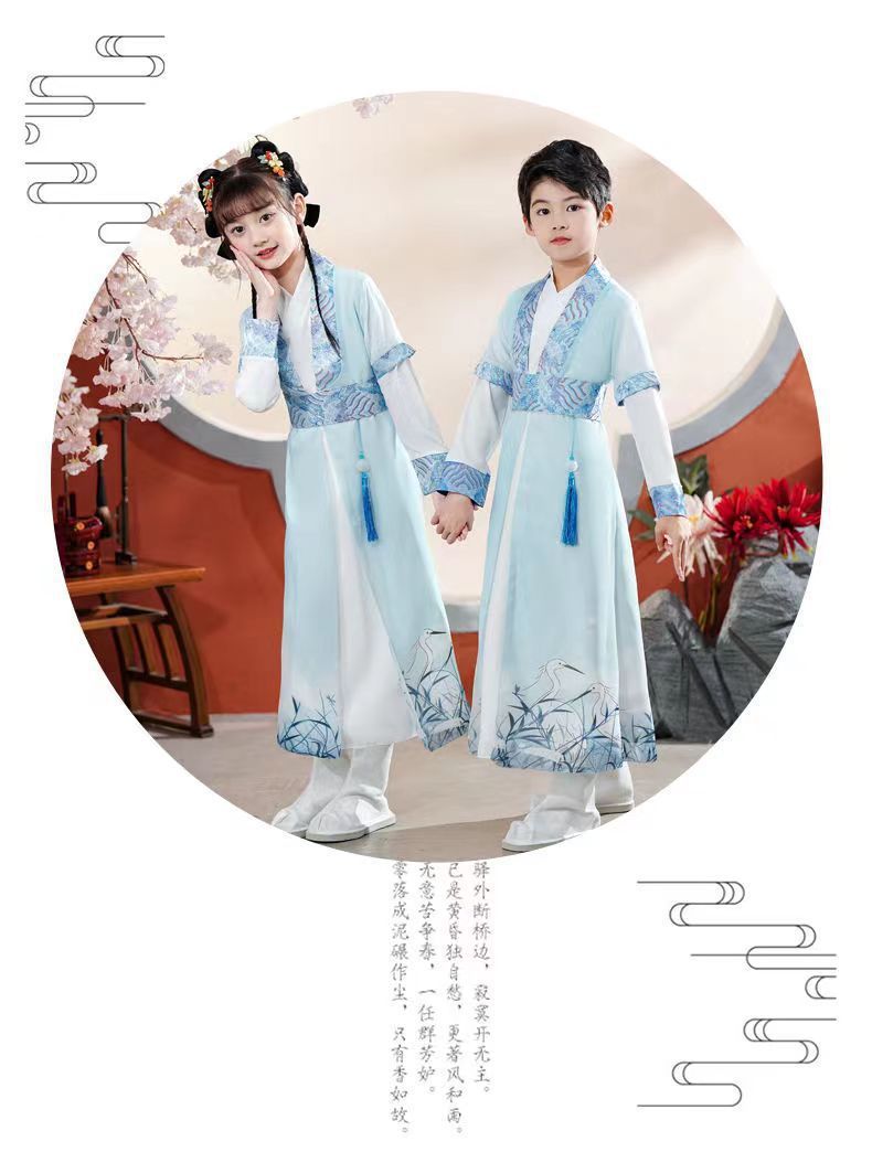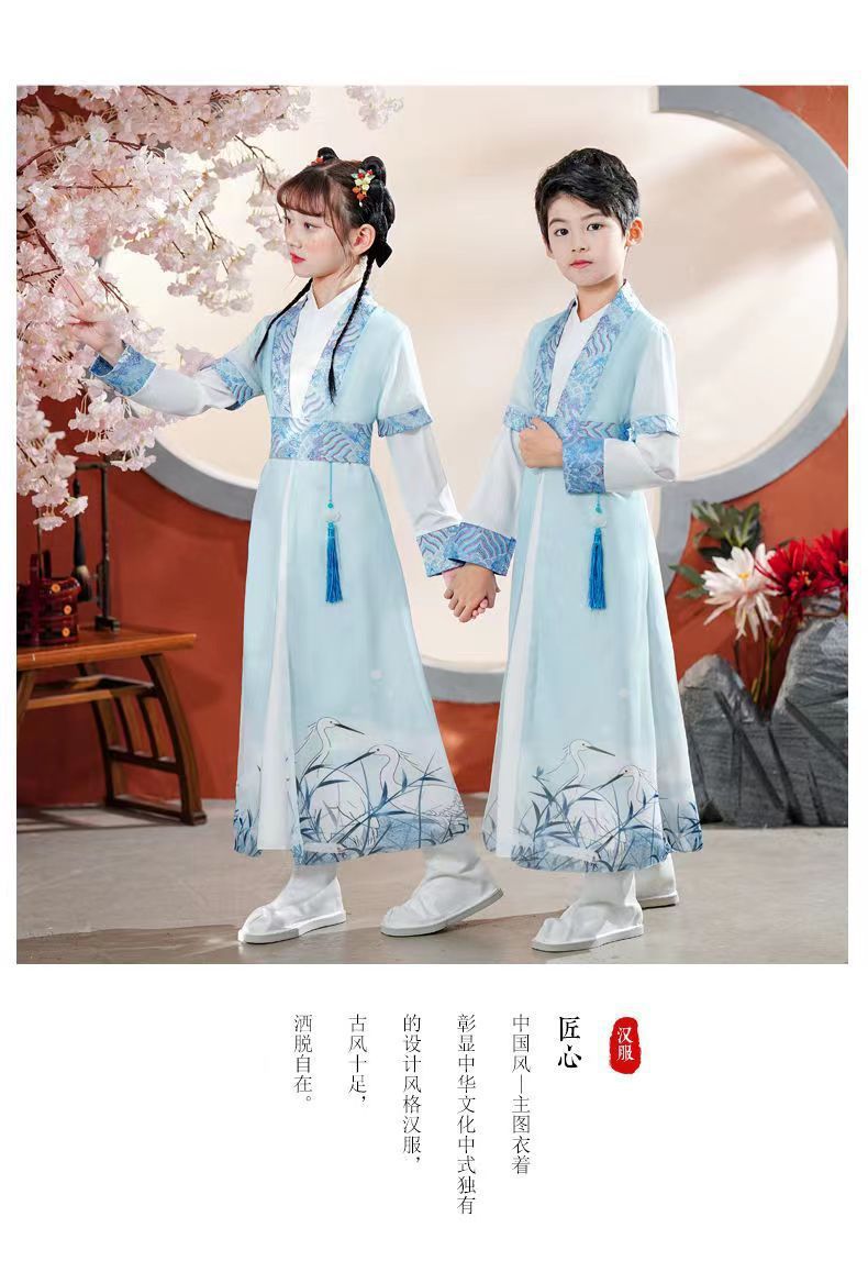 Антикварный Детский костюм Bookboy в китайском стиле Hanfu с длинными рукавами для весенне-осенних выступлений Костюм мастера с тремя символами Костюм для написания церемонии выступления