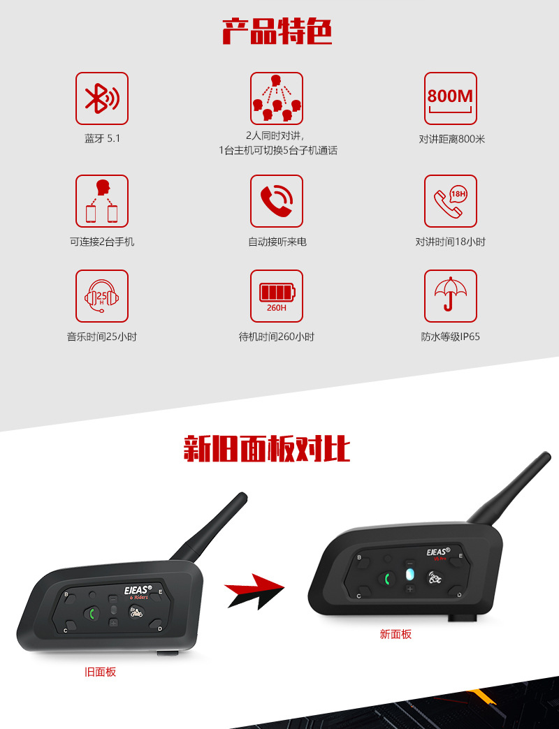 EJEAS полнодуплексная система связи с шумоподавлением CVC, V6C, одиночный комплект, переключаемый интерком для 6 человек, Bluetooth-рация для судей, оптовая продажа для международных рынков