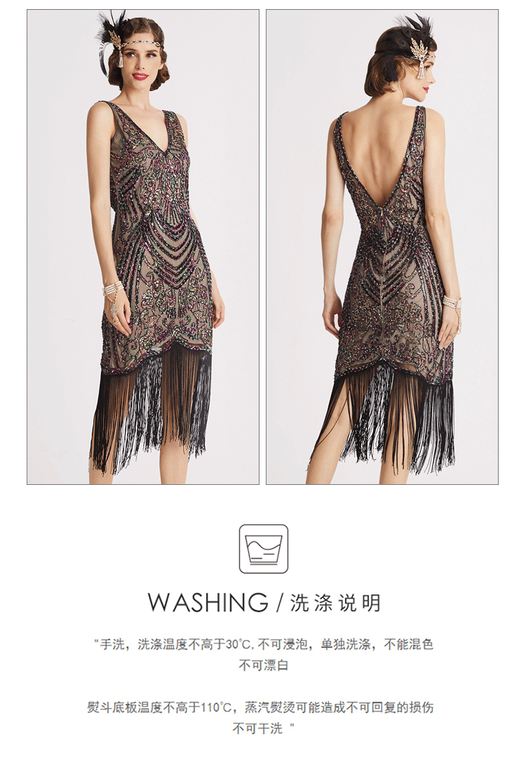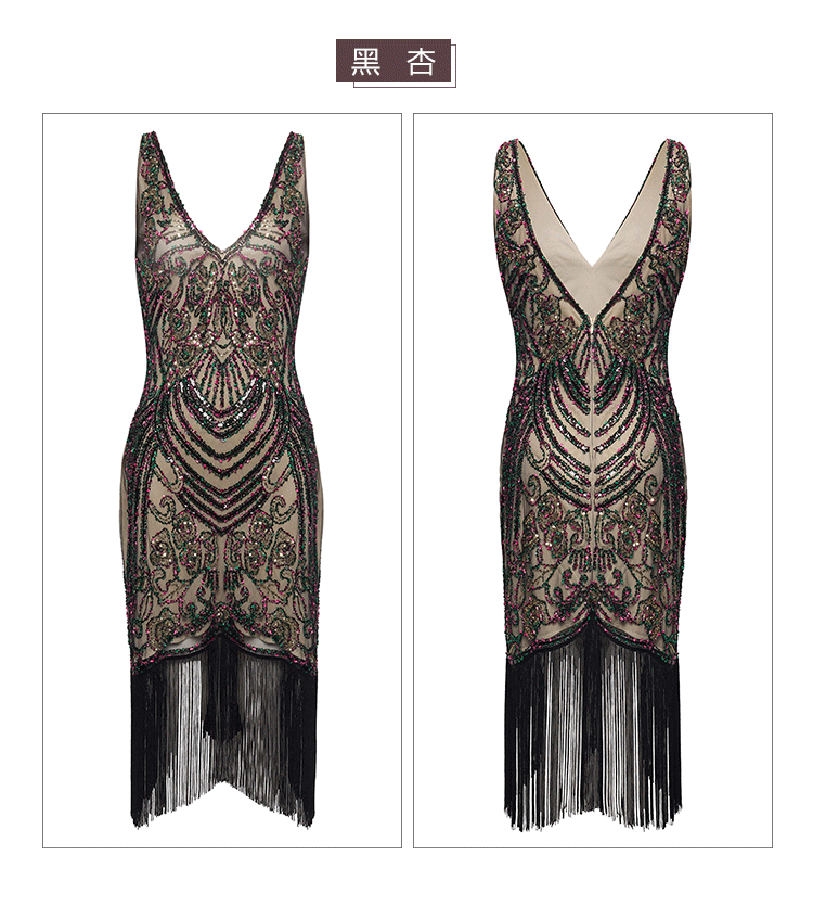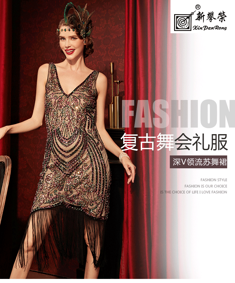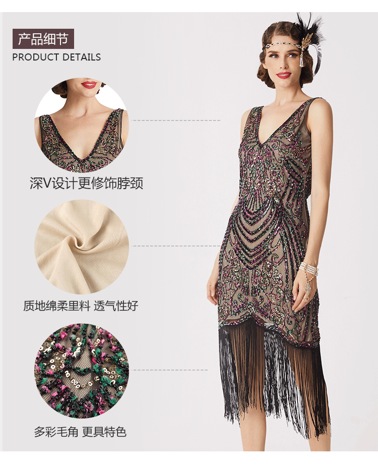 Европейское и американское трансграничное ретро-маскарадное платье высокого класса с V-образным вырезом Гэтсби вечернее платье с кисточками и блестками