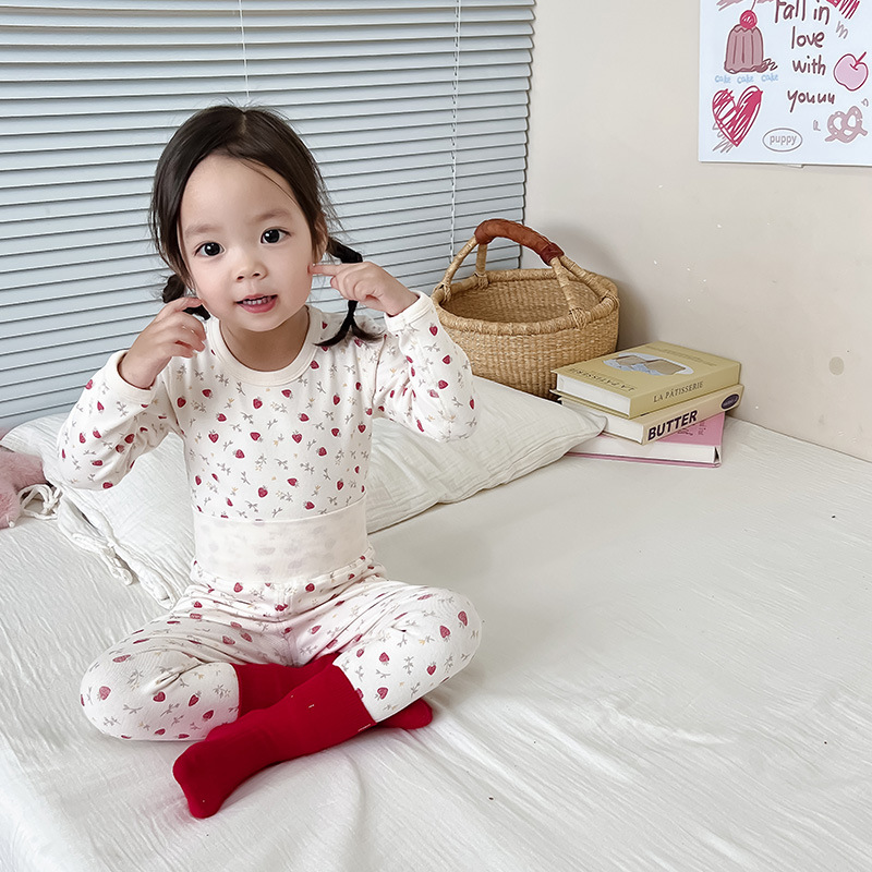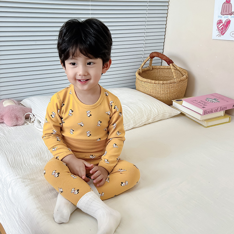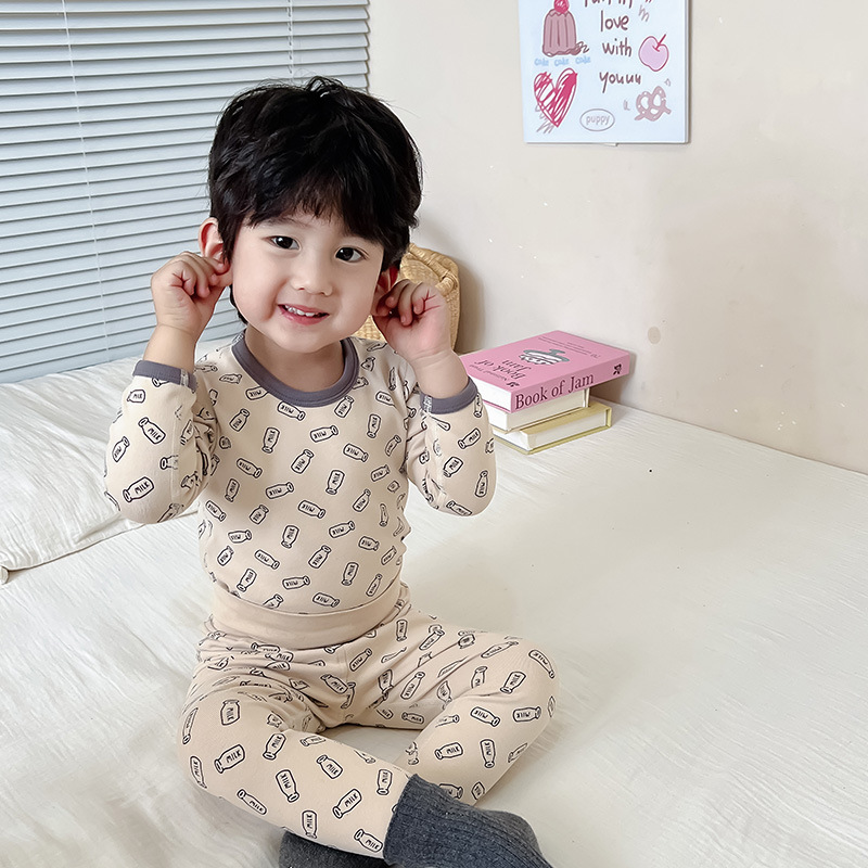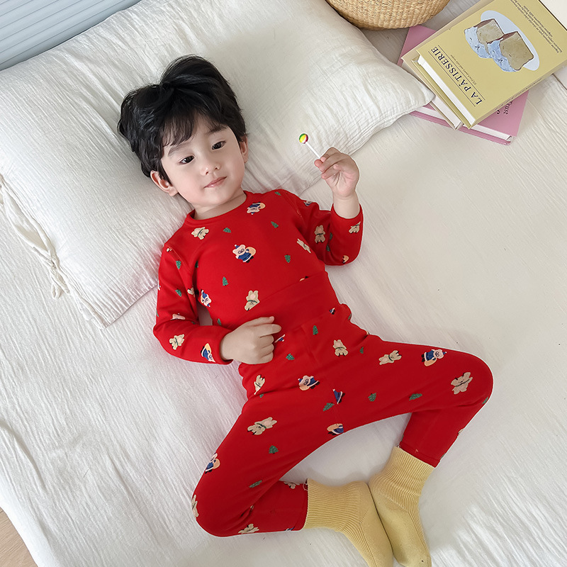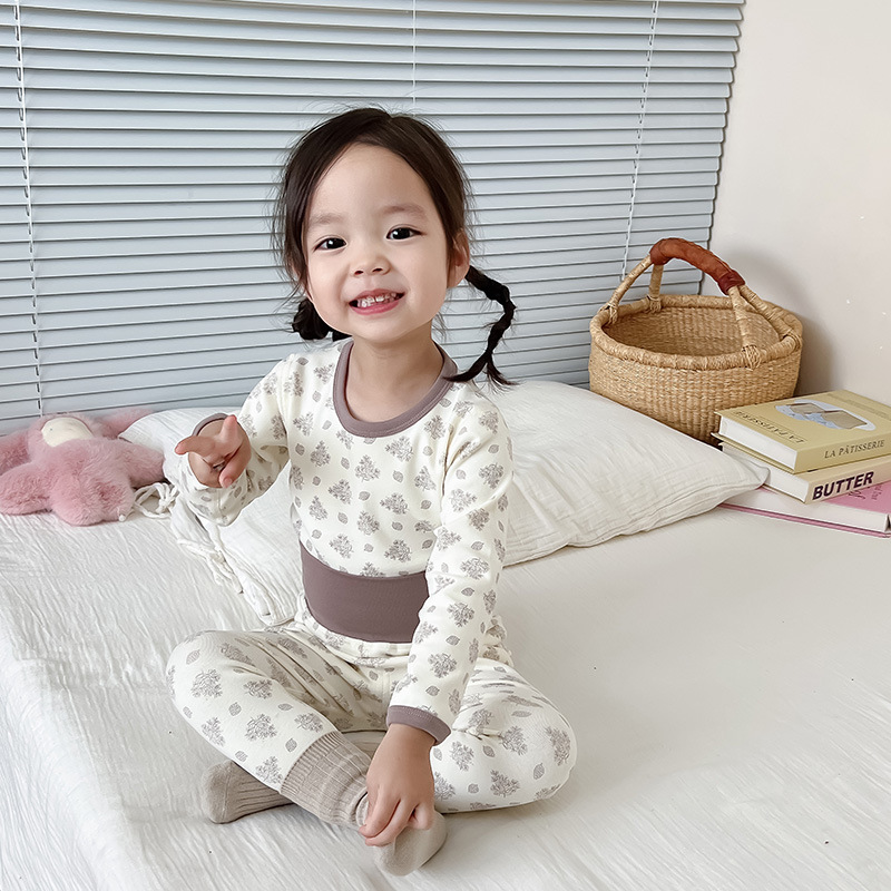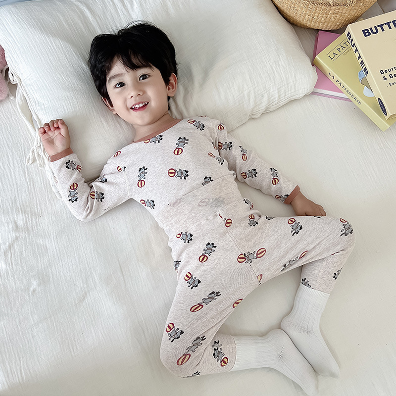 Детская осенняя одежда и брючный костюм Хлопковое детское нижнее белье с высокой талией Защита живота Осенне-зимние толстые теплые пижамы для мальчиков и девочек