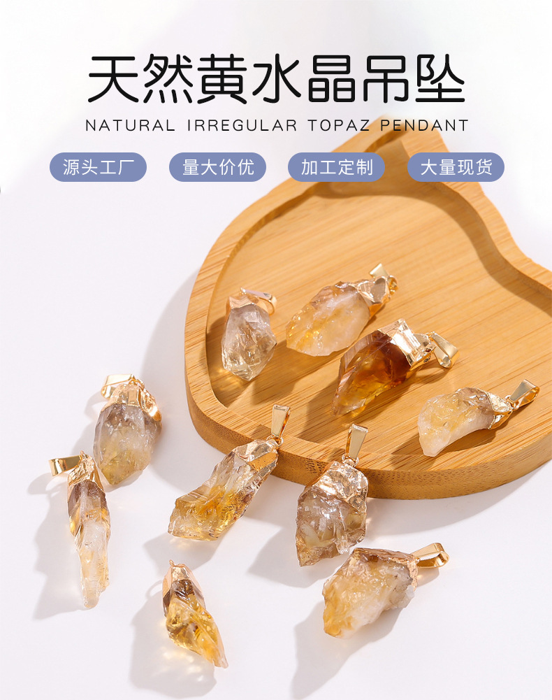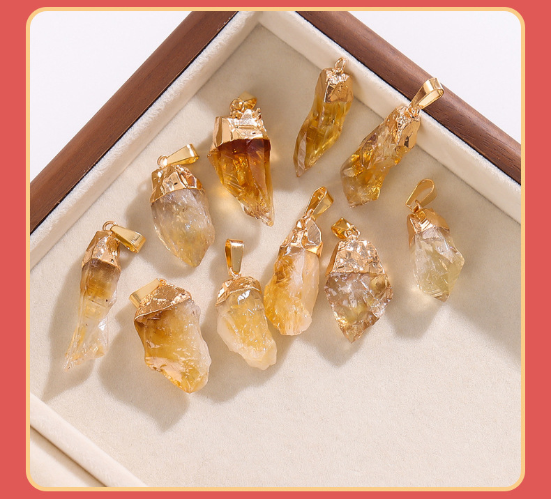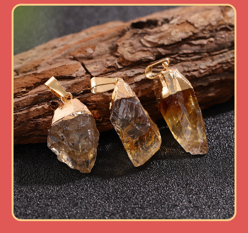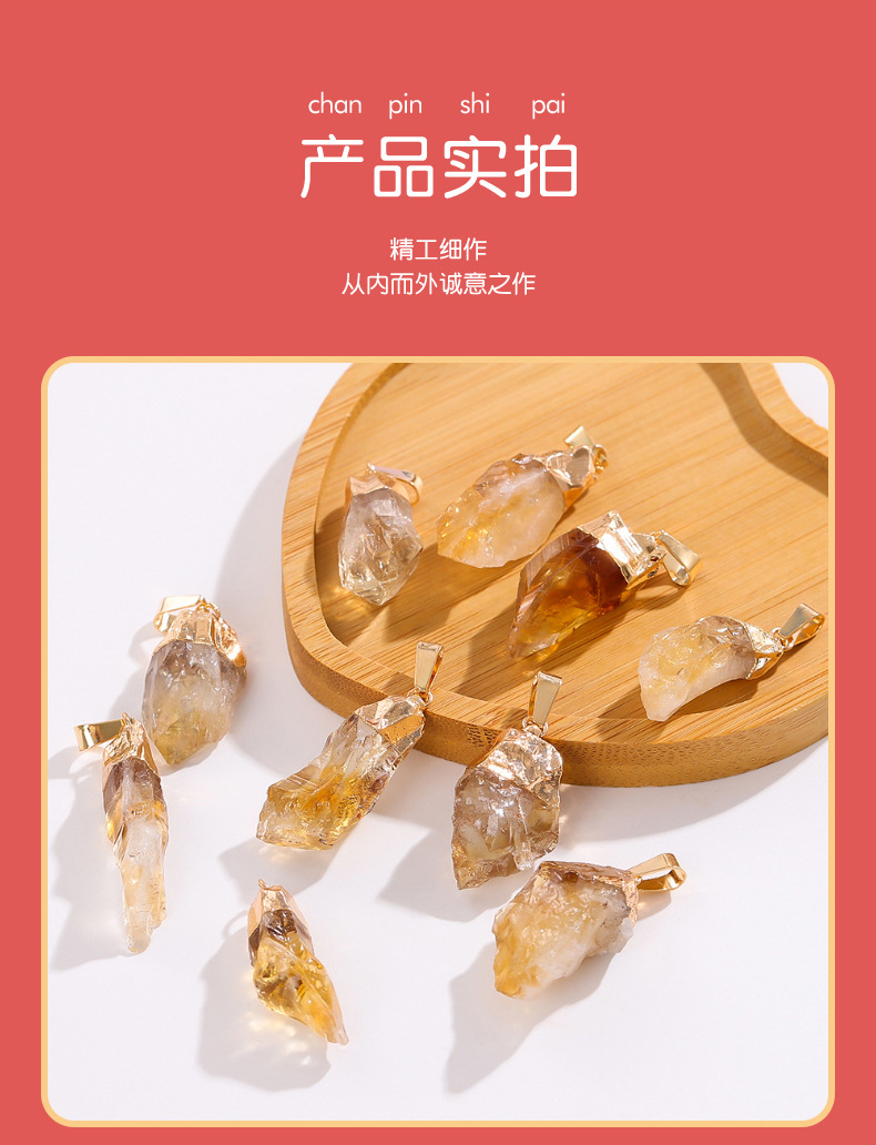 Натуральный цитрин кулон с гальваническим камнем неправильное ожерелье Кристалл гравий кулон DIY ювелирные аксессуары трансграничные