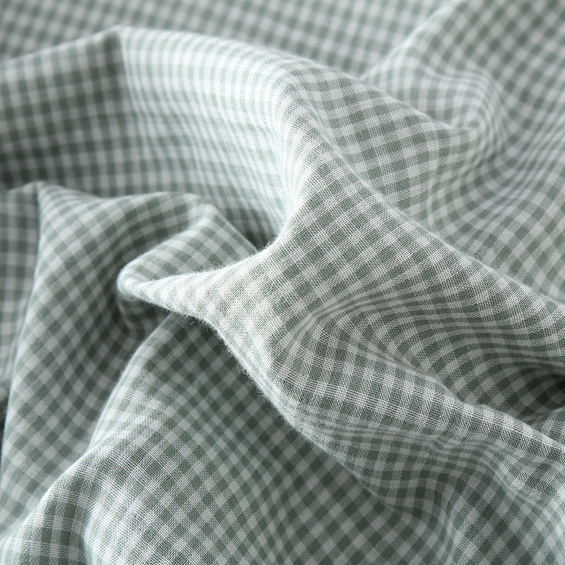 Весна и осень Двухслойная хлопчатобумажная пряжа из чистого хлопка Мужская пижама в японском стиле без принта Летняя тонкая домашняя одежда в клетку с длинными рукавами Костюм