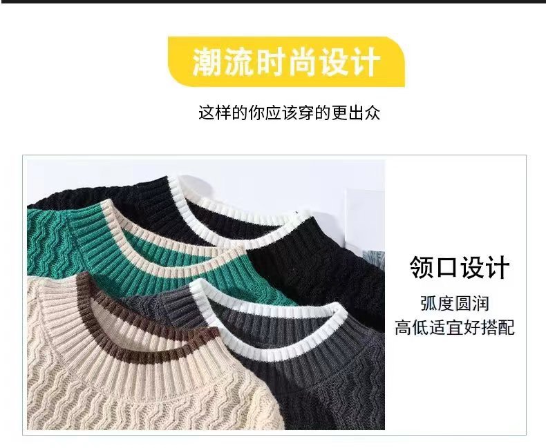 Свитер с круглым вырезом Мужская осенне-зимняя вязаная Базовая рубашка ручной работы в ленивом стиле Модный поддельный внутренний свитер из двух частей для подростков