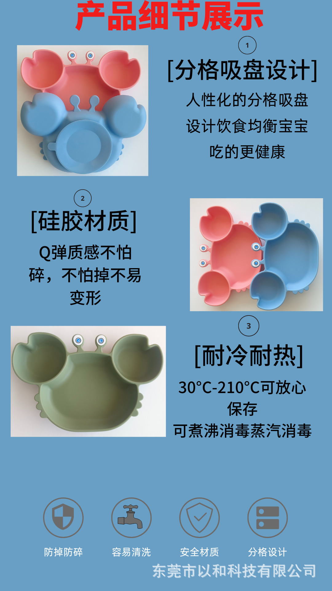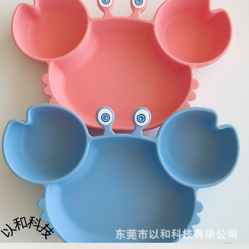Детская посуда, силиконовая обеденная тарелка с крабом, встроенная миска с защитой от падения, для детского питания