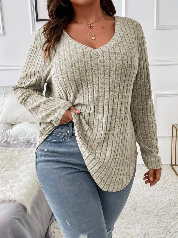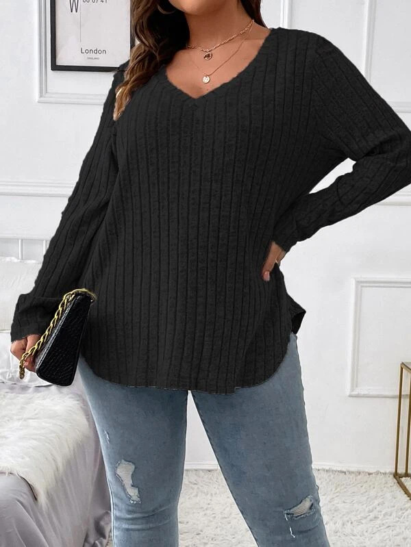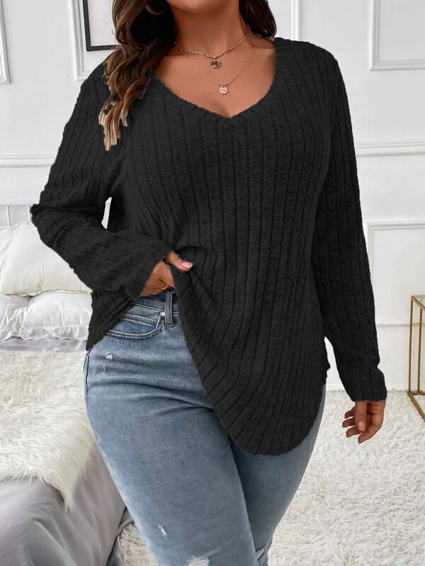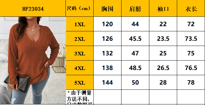 Amazon 2024, осенне-зимняя новая однотонная женская футболка больших размеров с v-образным вырезом и длинными рукавами, футболка с начесом, свободный пуловер