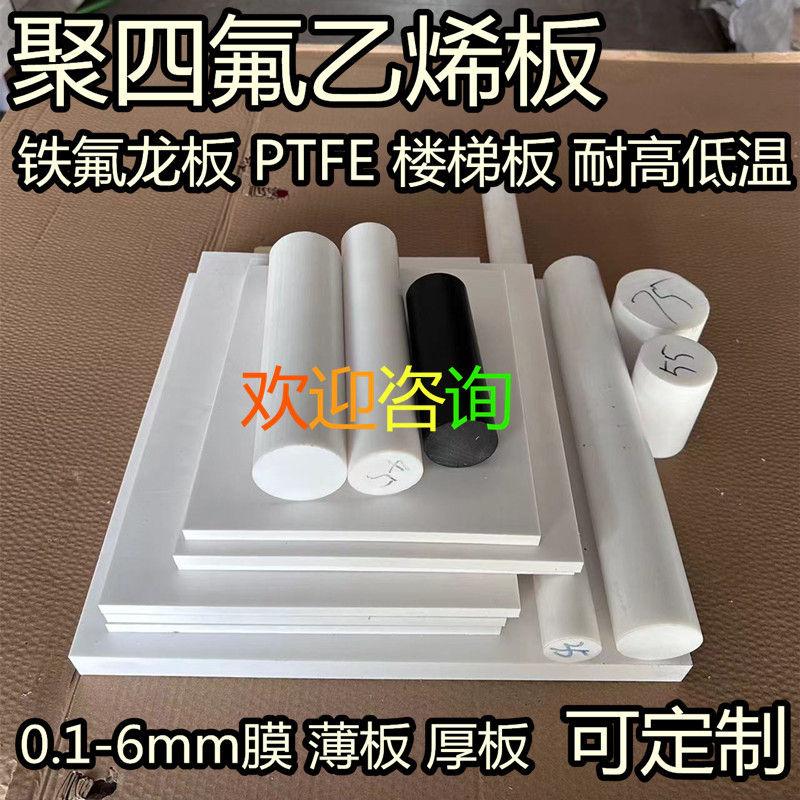 PTFE(聚四氟乙烯)俗称塑料王、F4、或铁氟龙。采用悬浮聚四氟乙烯树脂经模压成型制得可制成板材、车削膜、管。