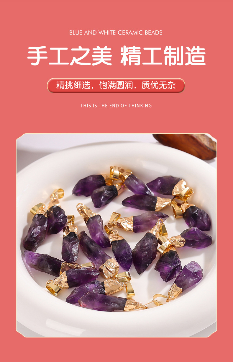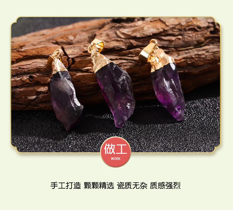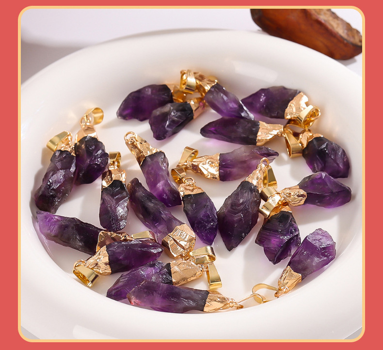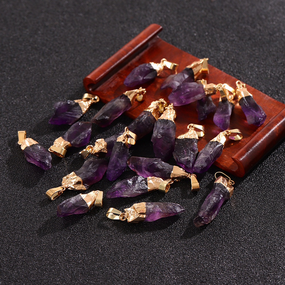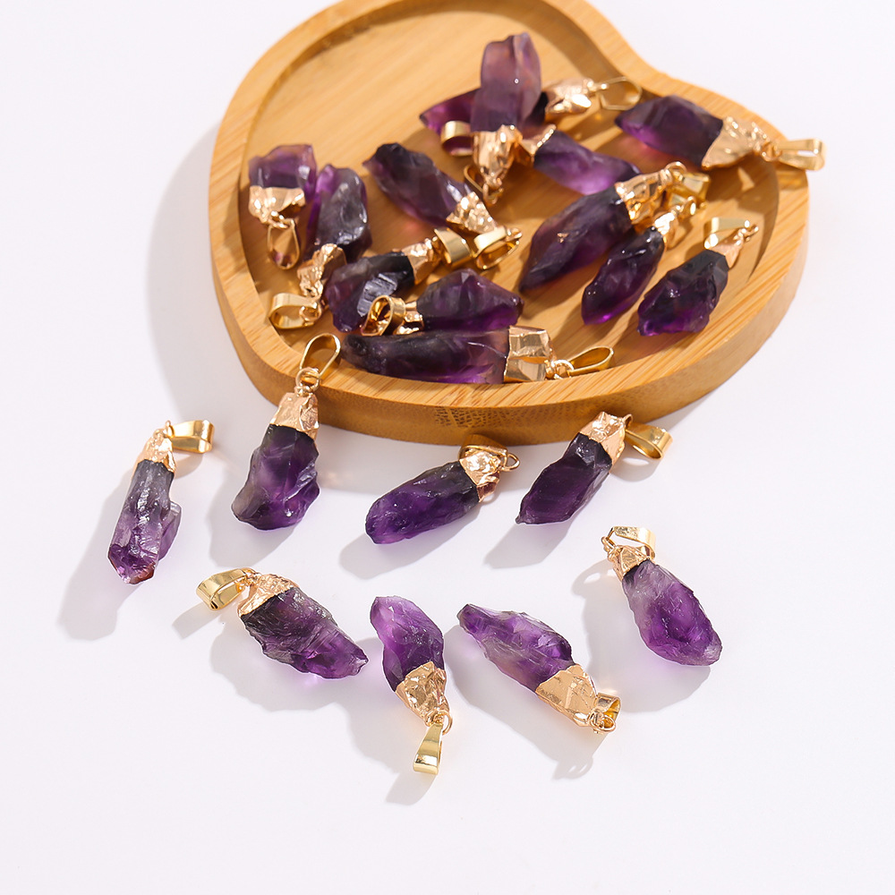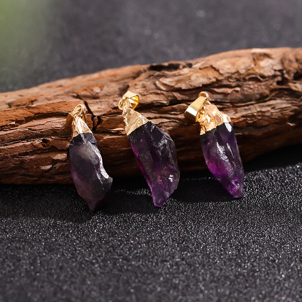 Трансграничный кулон из натурального аметиста, асимметричный кристалл, ожерелье из необработанного камня, ювелирные аксессуары своими руками, кулон, оптовая продажа