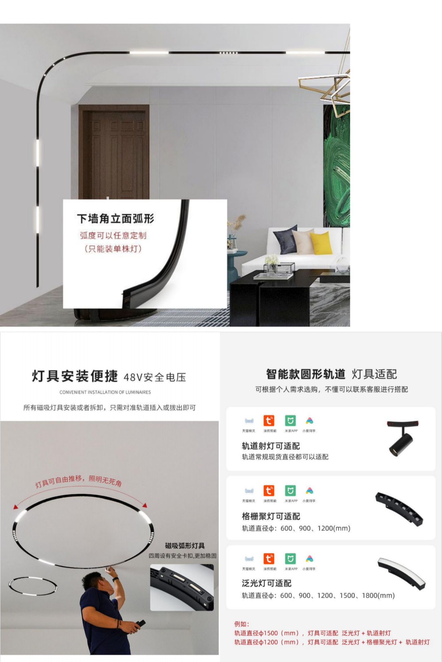 Круглый Магнитный Трековый светильник Интеллектуальный дуговой кольцевой свет Скрытая гостиная без основного света свет линии освещения