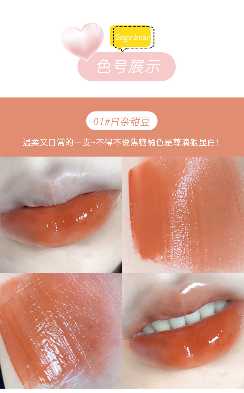 Блеск для губ Gegebear Gogo Little Bear Water Gloss с зеркальным блеском, увлажняющий, придающий объем, увлажняющий бальзам для губ