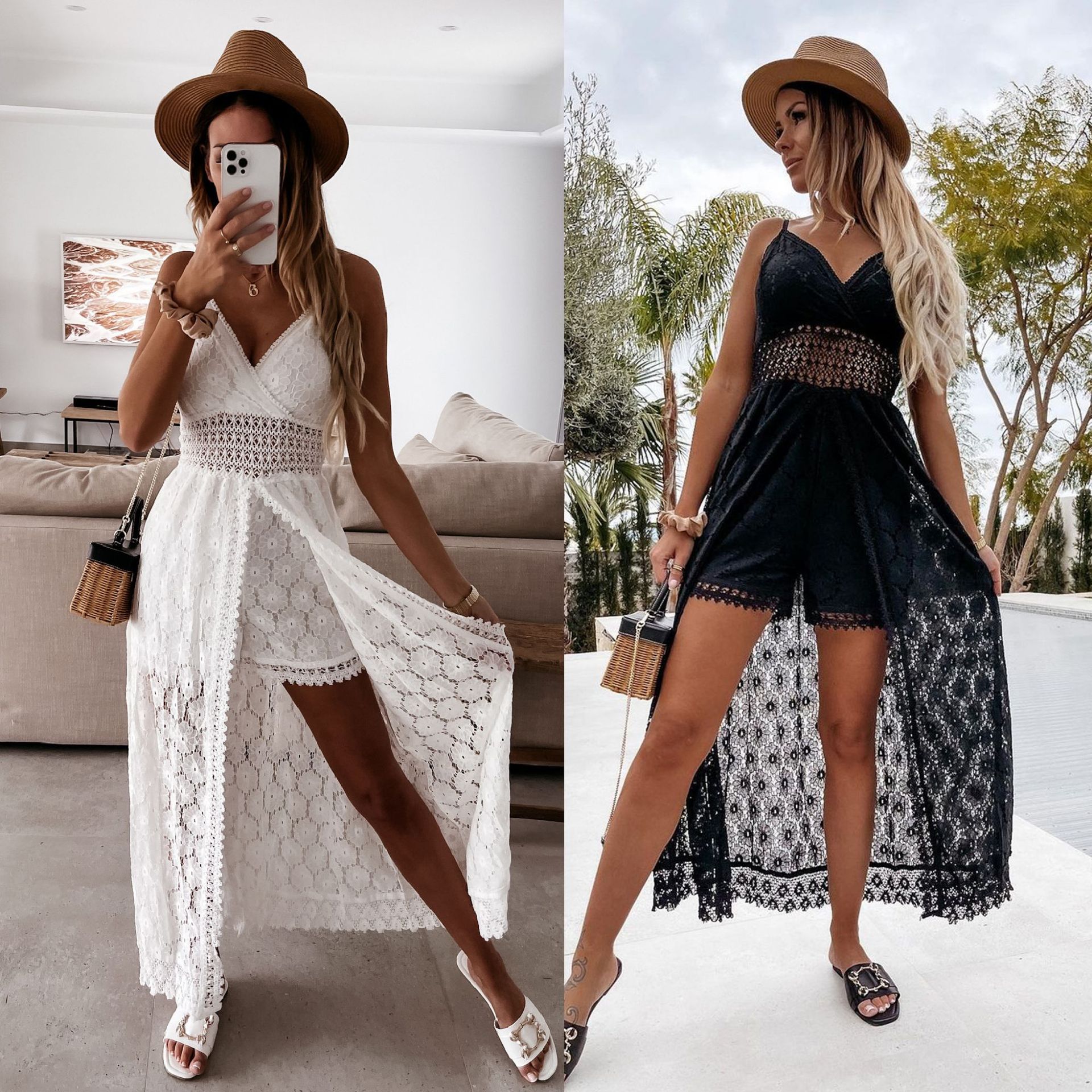 Трансграничный 2023 европейский и американский весенне-летний новый сексуальный кружевной комбинезон на бретелях, повседневный комбинезон для отпуска в Instagram, шорты для женщин