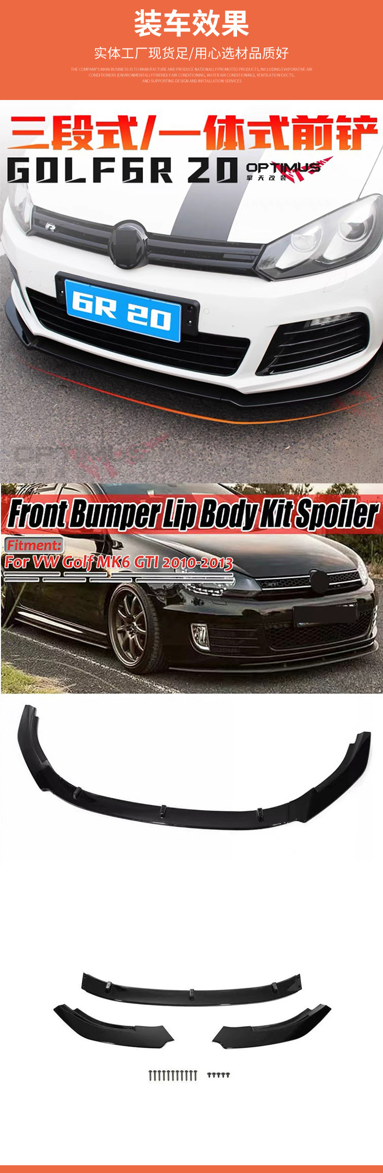 Подходит для Volkswagen Golf 6GTI MK6 R20, модификация передней губы, трехсекционная передняя губа, текстура из углеродного волокна
