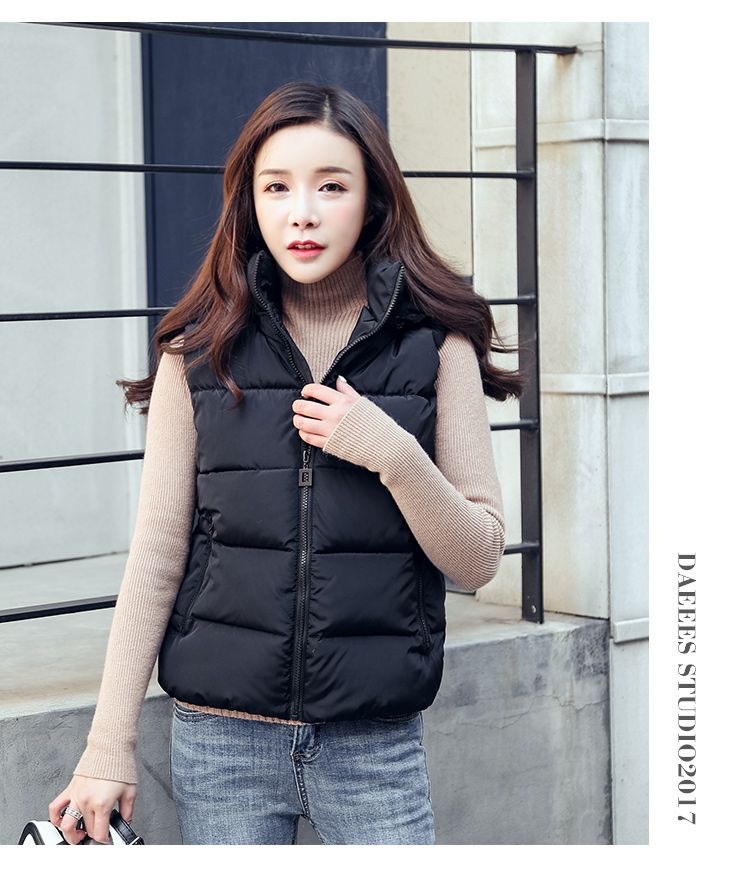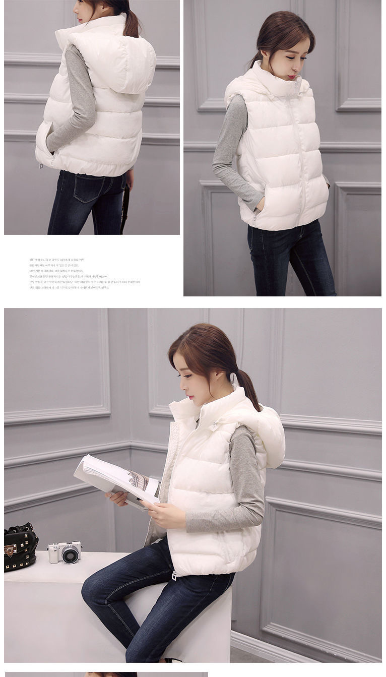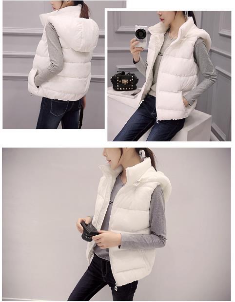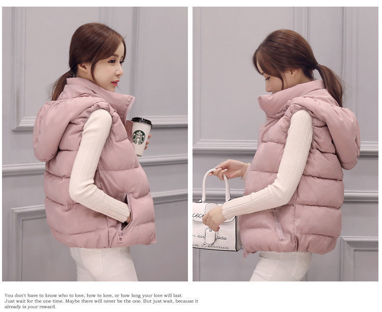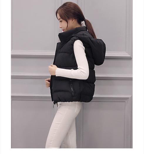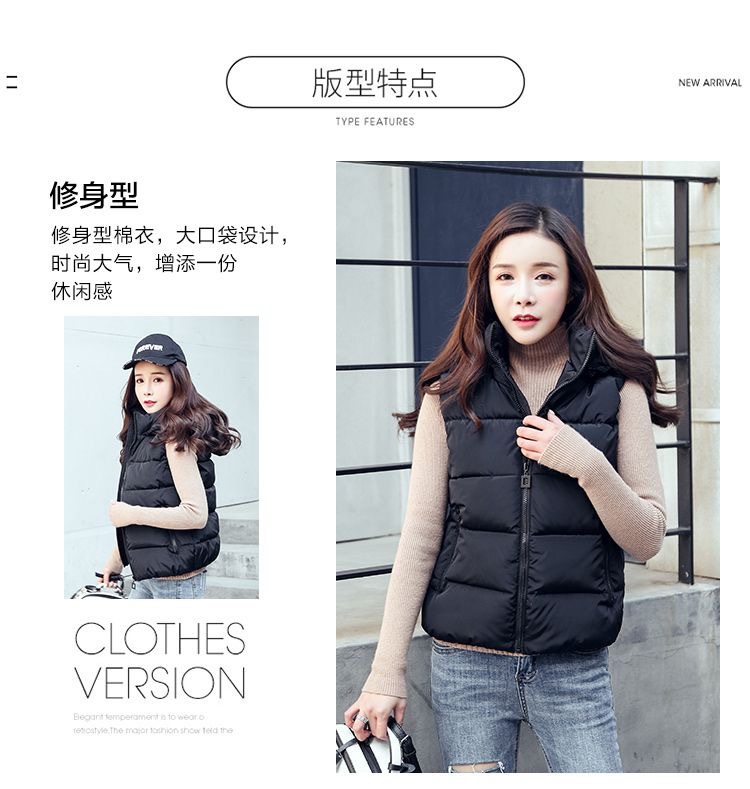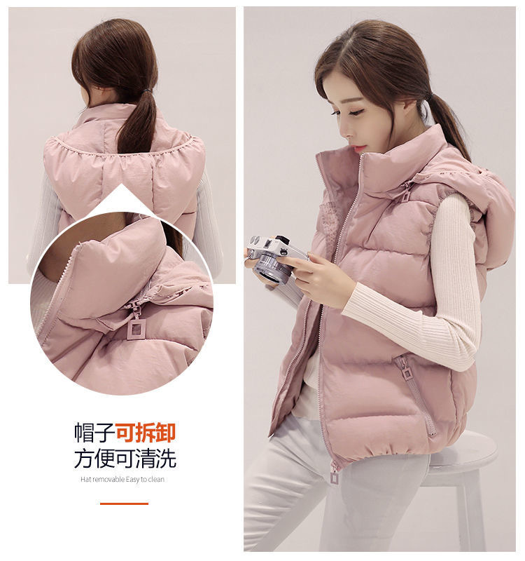 Трансграничный жилет [съемная шапка] 2024, осенне-зимний женский хлопковый жилет, короткий корейский стиль, утягивающий вид, пуховая хлопковая спинка