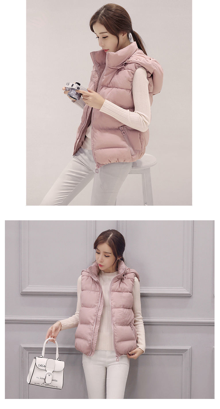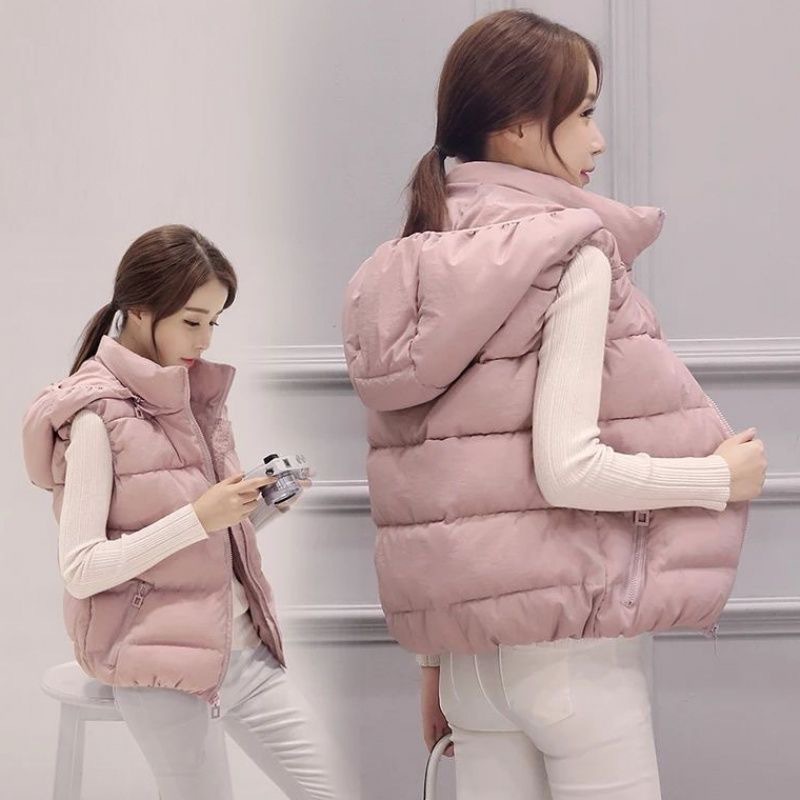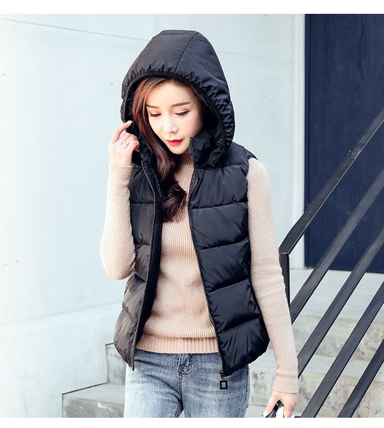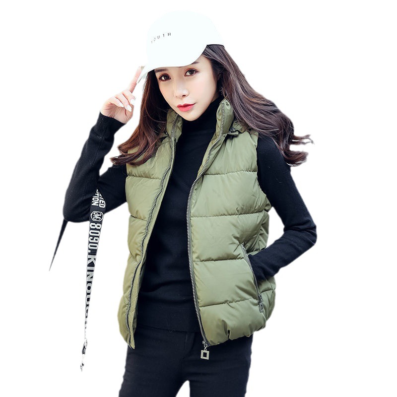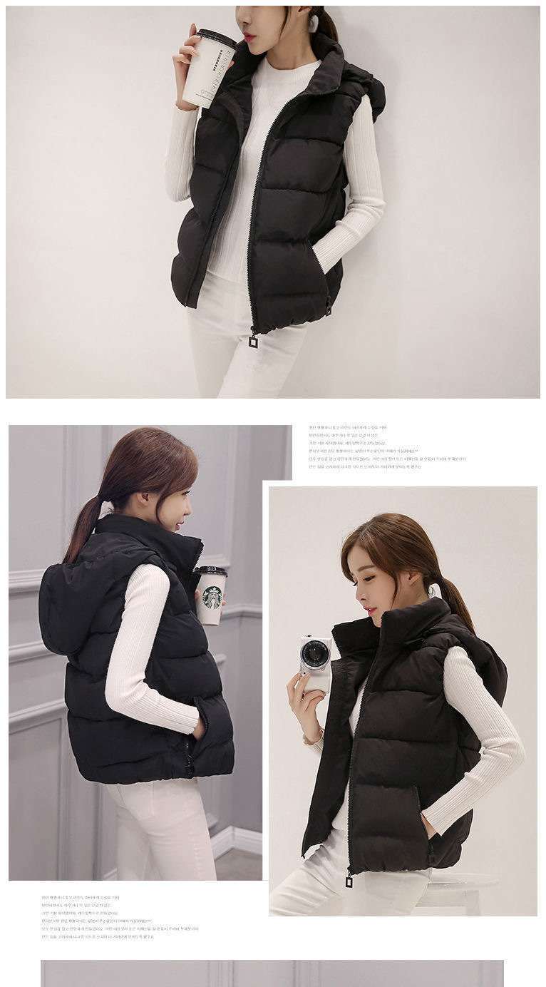 Трансграничный жилет [съемная шапка] 2024, осенне-зимний женский хлопковый жилет, короткий корейский стиль, утягивающий вид, пуховая хлопковая спинка