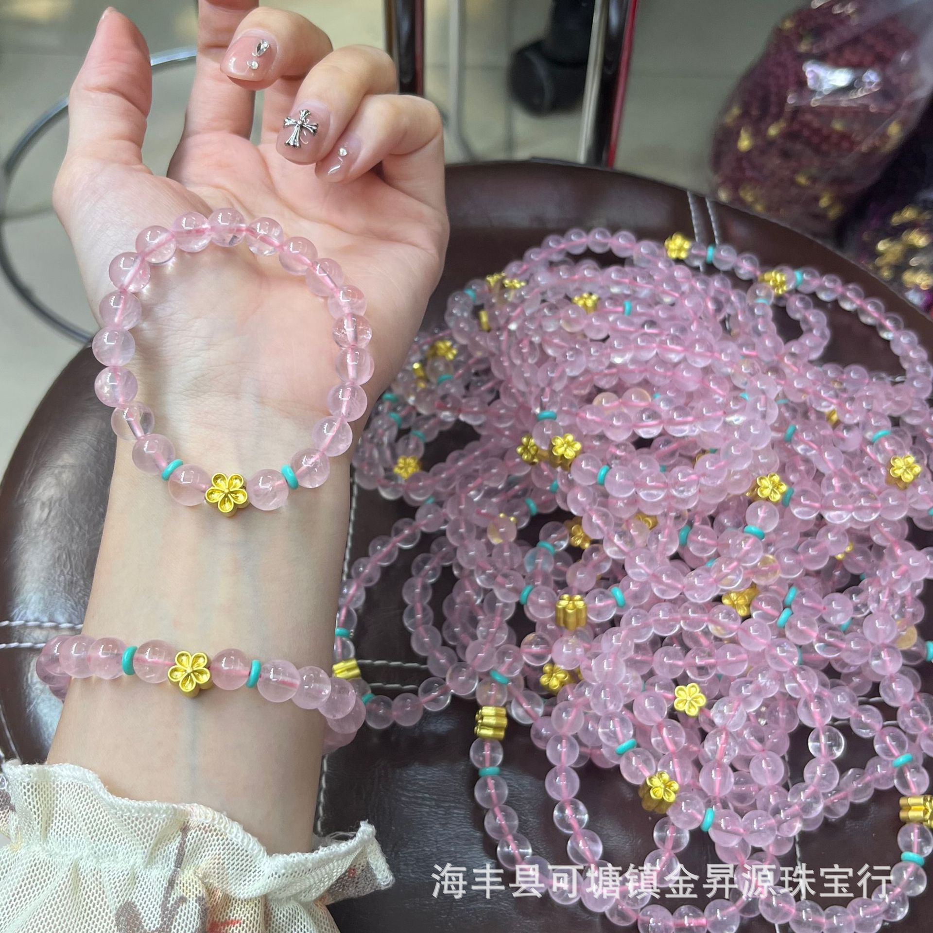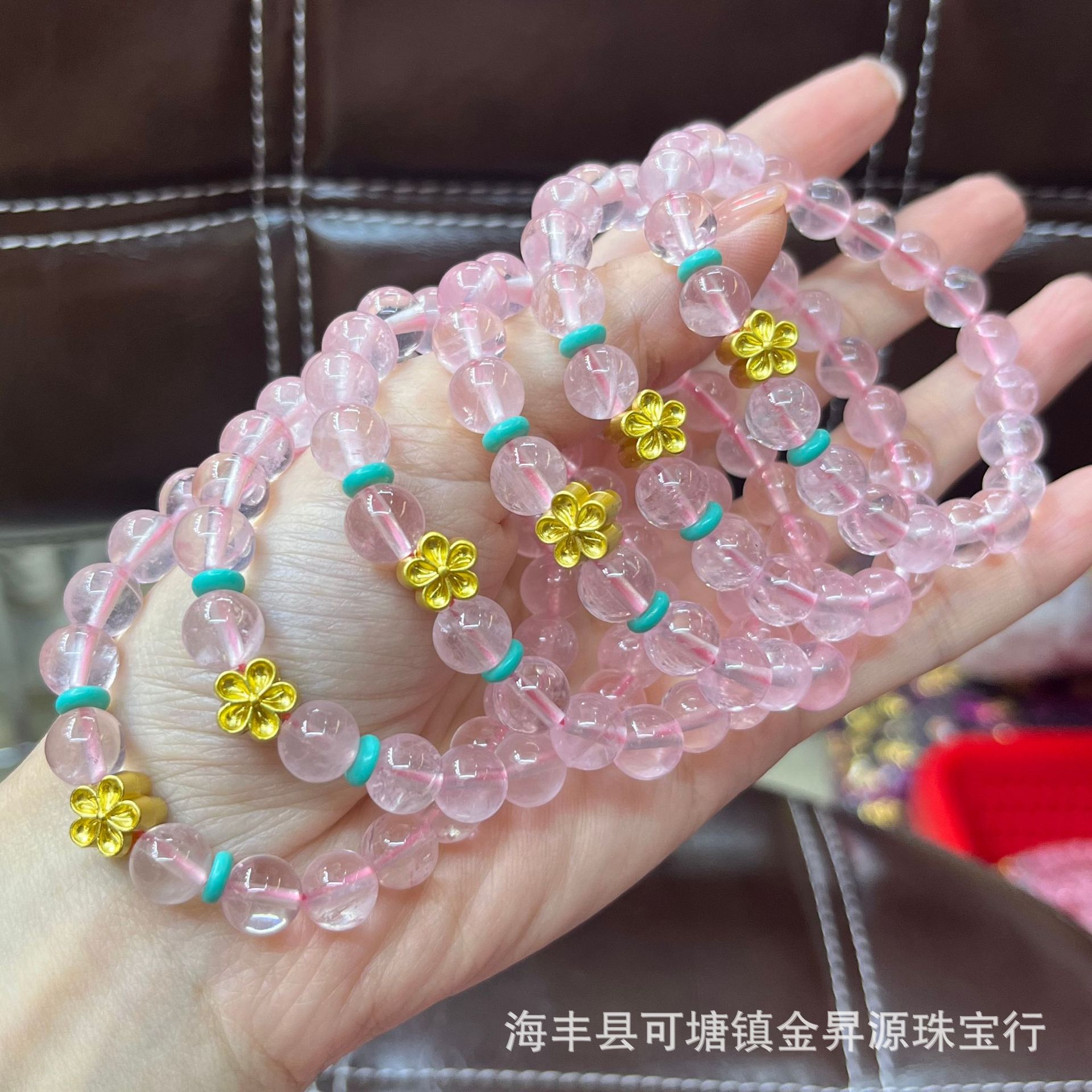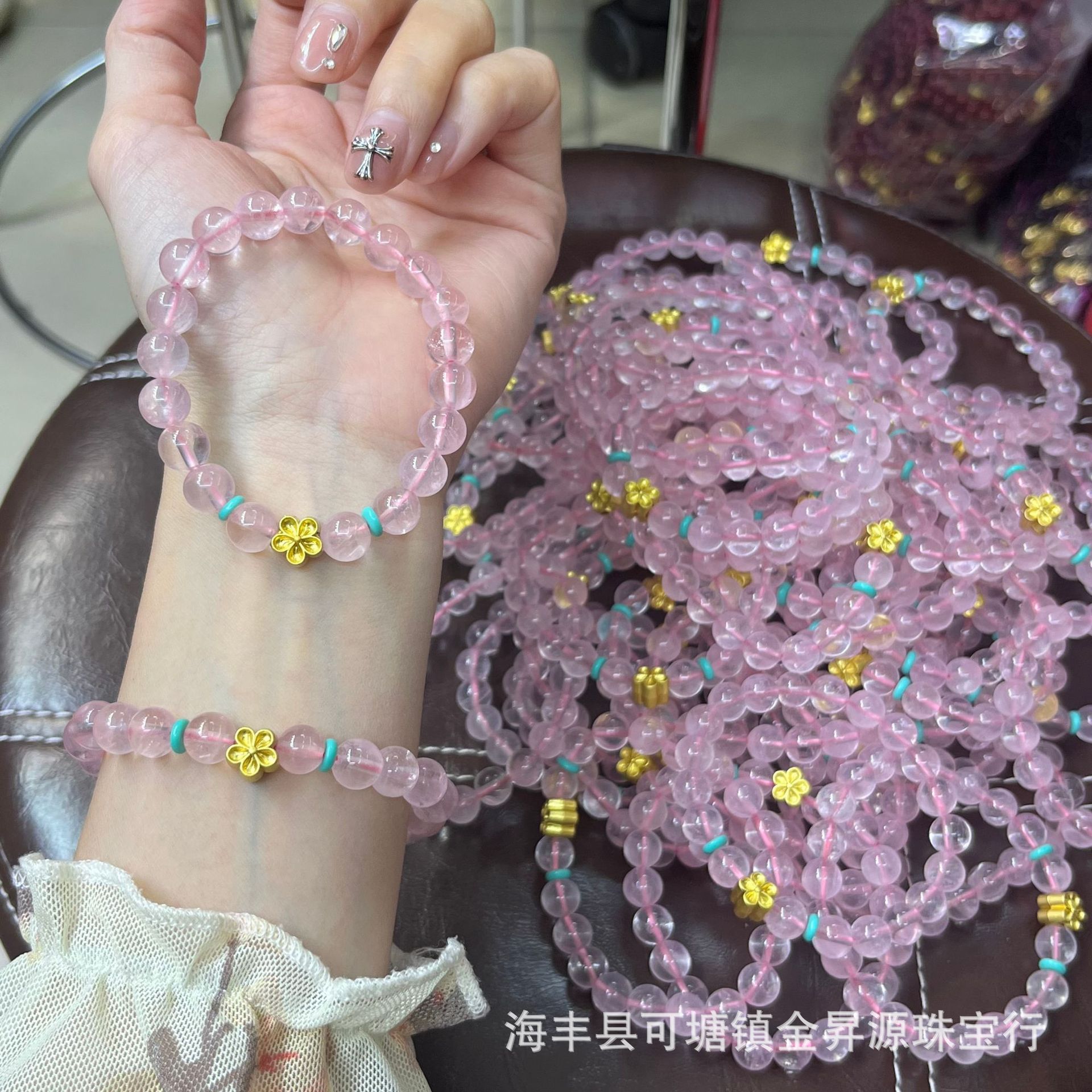 马达加斯加天然粉晶手链小花手串招桃花粉水晶女饰品小红书直播款 批发量越大价格越低,可供直播间长期合作,欢迎来电私聊