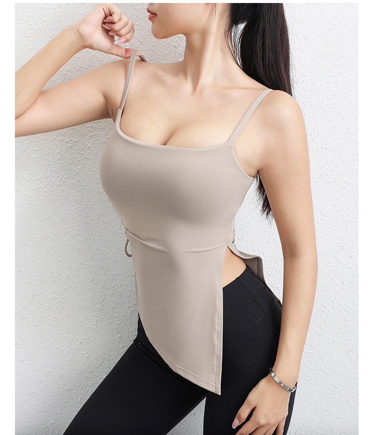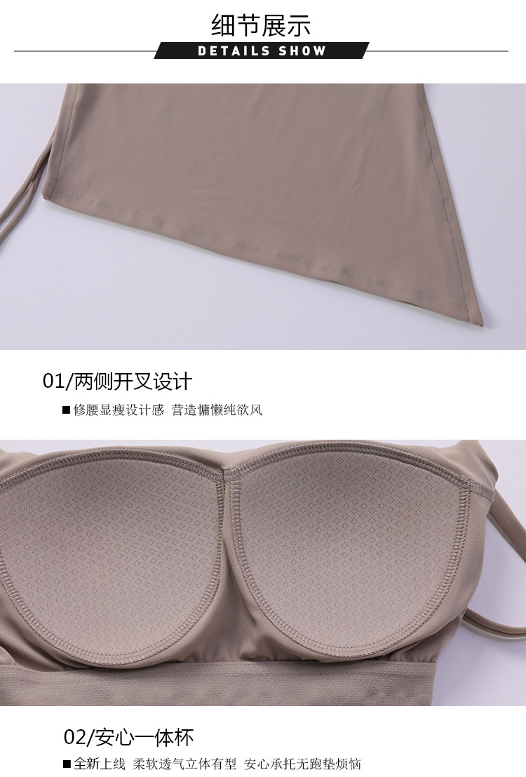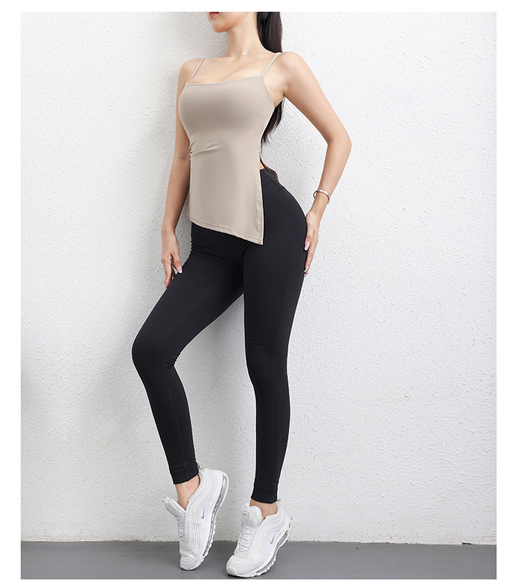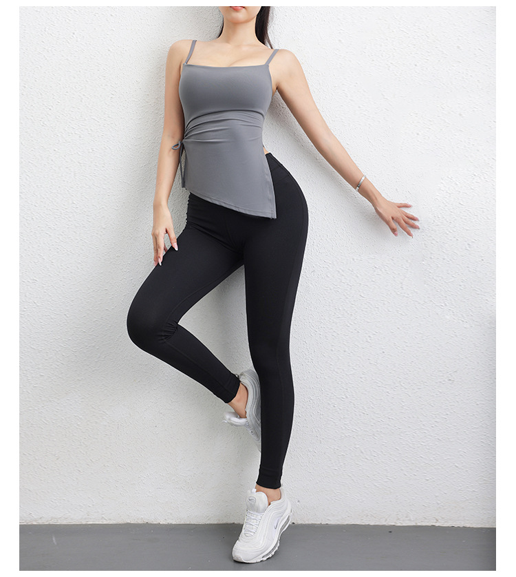 Голый односторонний плиссированный костюм для йоги, облегающий спортивный топ с разрезами с обеих сторон, нишевый фитнес-костюм для женщин