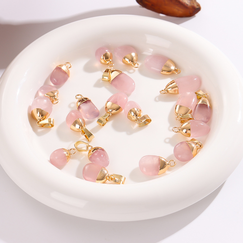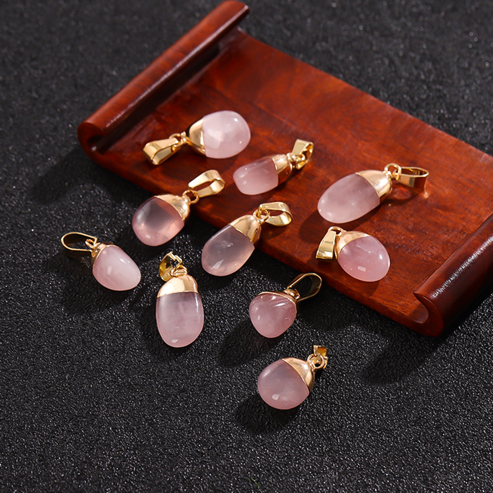 Кулон из натурального необработанного розового кварца, подвеска для ожерелья, аксессуары для самостоятельного изготовления украшений, кулон для трансграничной торговли на Amazon